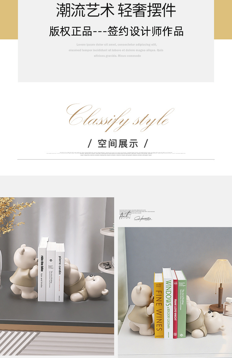 치유 곰 서점 작은 장식품 거실 입구 TV 캐비닛 홈 장식 어린이 방 연구 데스크탑 책 스탠드스토어 가기
