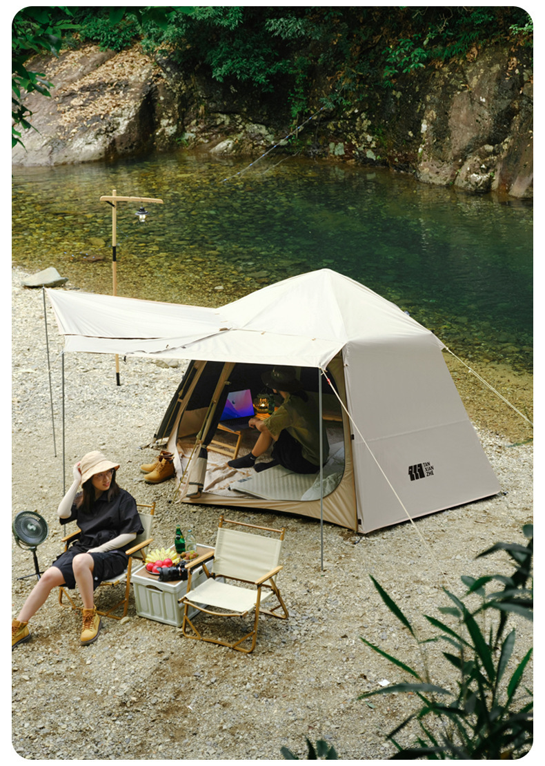 탐험가 야외 피크닉 캠핑 완전 자동 휴대용 접이식 완전 자동 육각 검은 고무 텐트 태양 보호