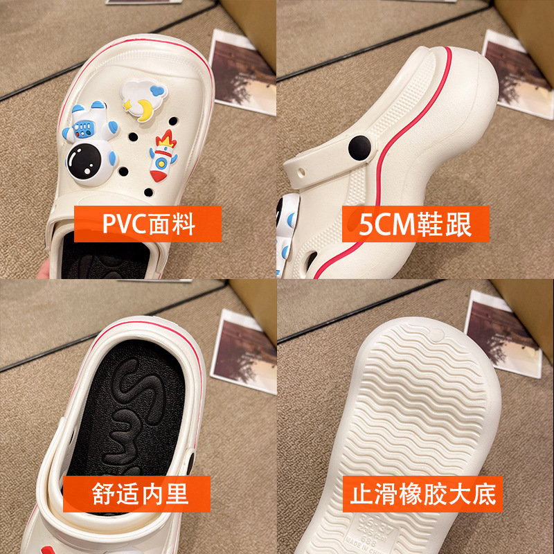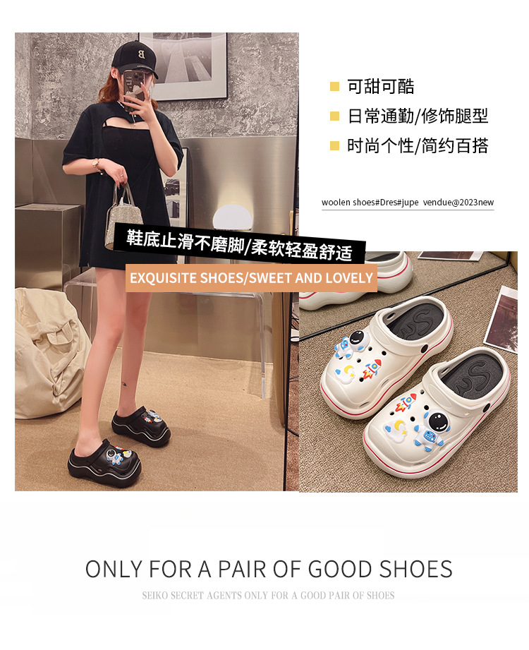 EVA 구멍 신발 여성용 두꺼운 밑창 신발 발가락 느낌 귀여운 학생 여성용 샌들과 슬리퍼 만화 2023 새로운 여름