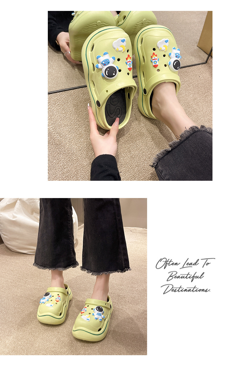 EVA 구멍 신발 여성용 두꺼운 밑창 신발 발가락 느낌 귀여운 학생 여성용 샌들과 슬리퍼 만화 2023 새로운 여름스토어 가기