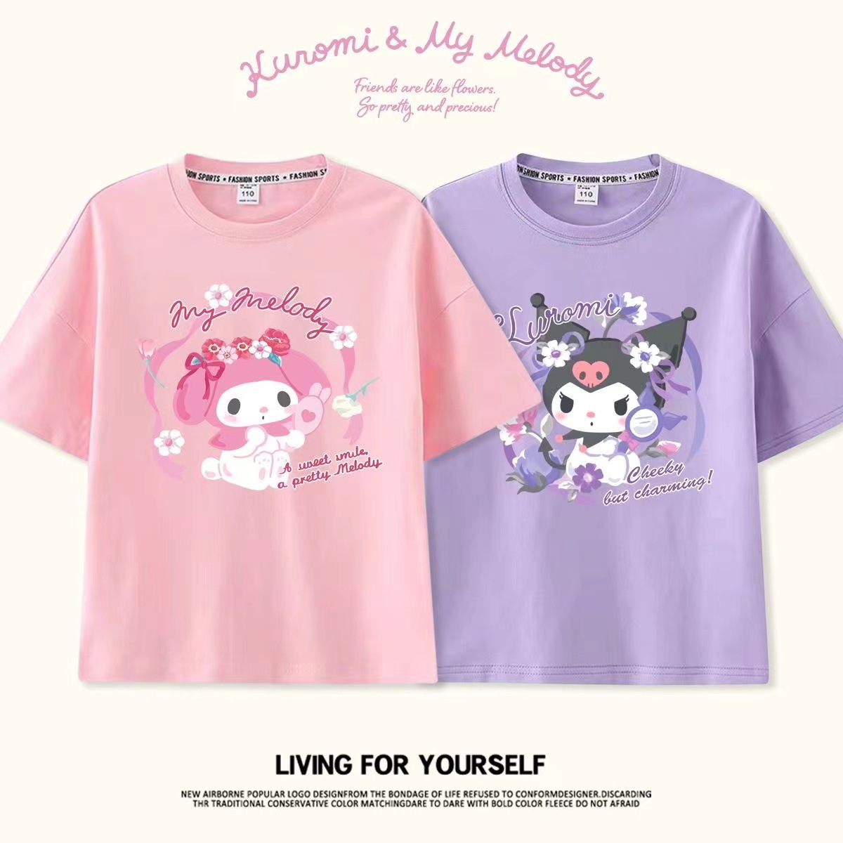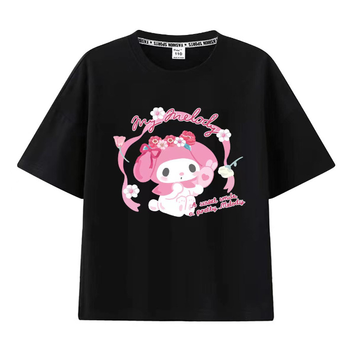 Kuromi Melody Girls 반팔 티셔츠 2025 여름 계피 개 공동 브랜드 스위트 캐주얼 코튼 아동복