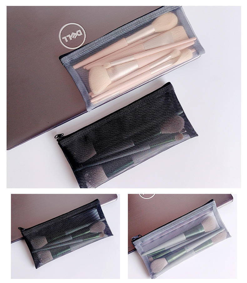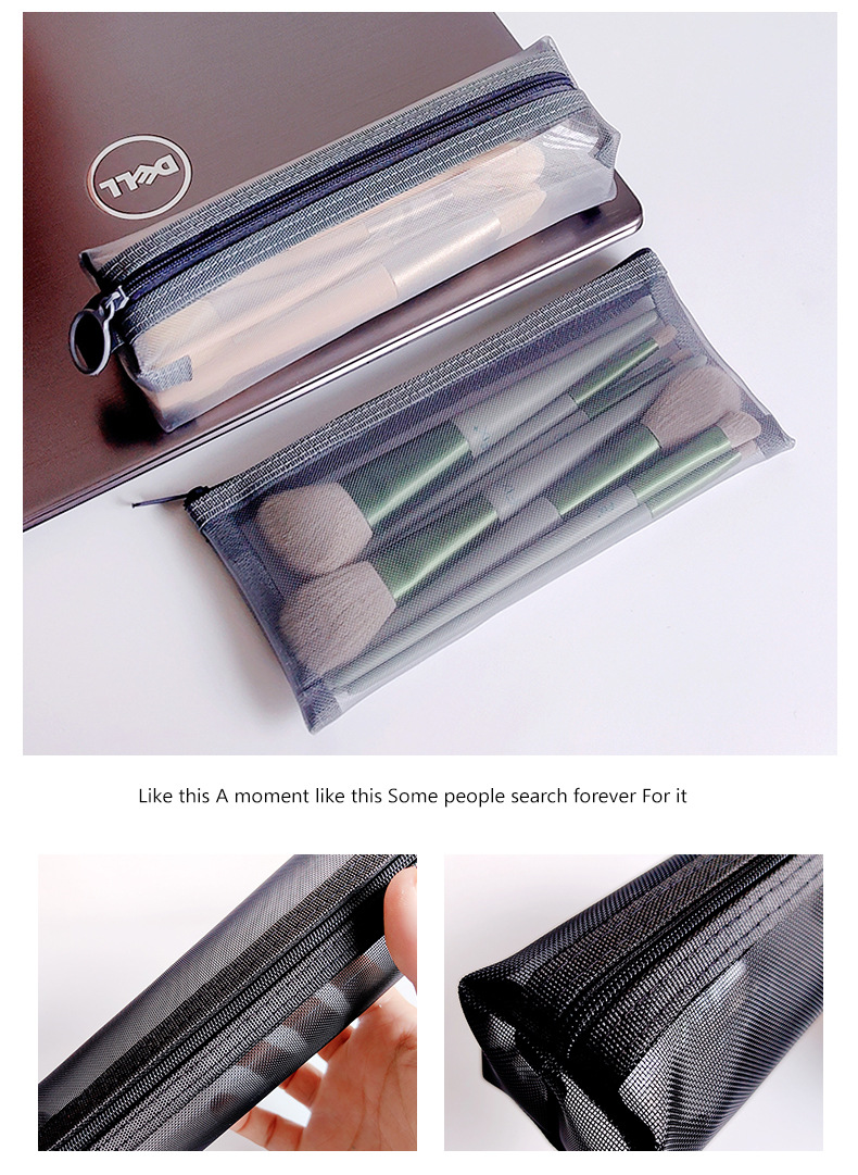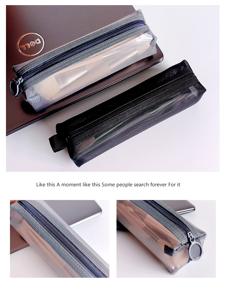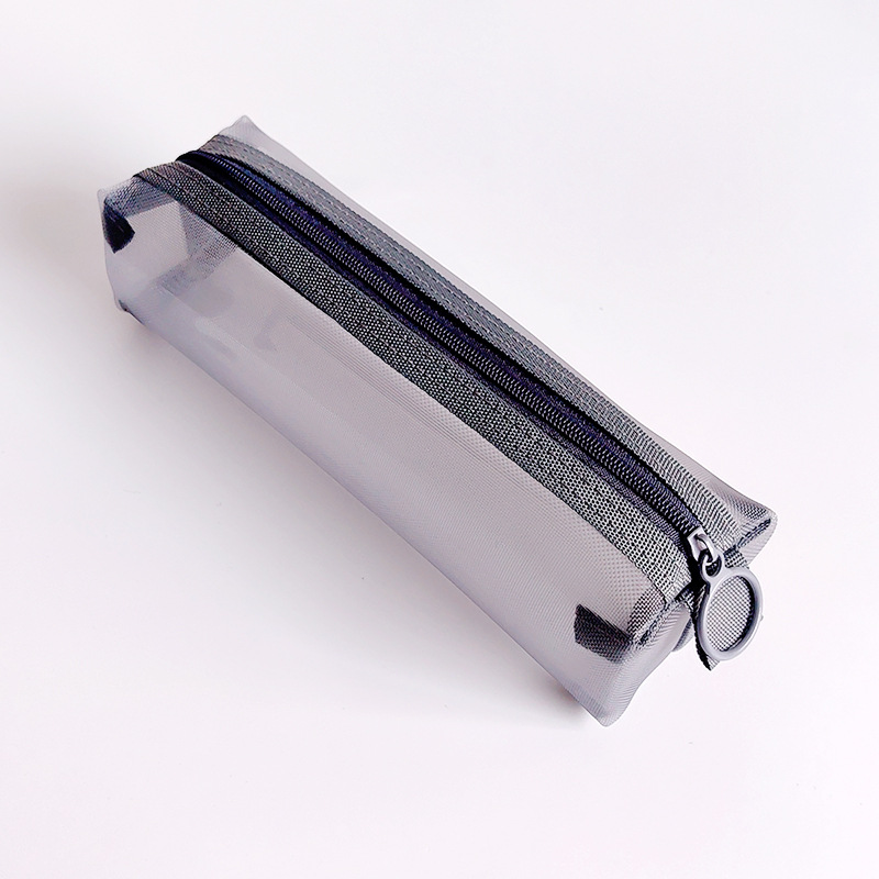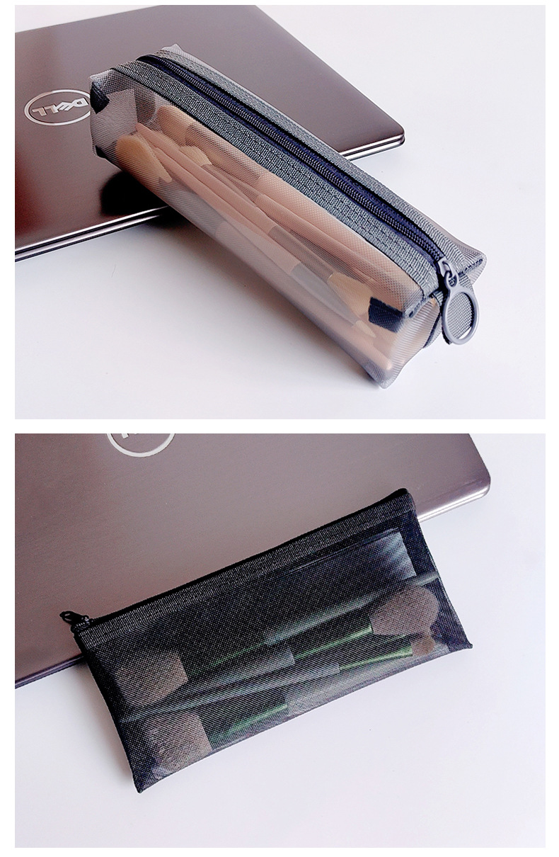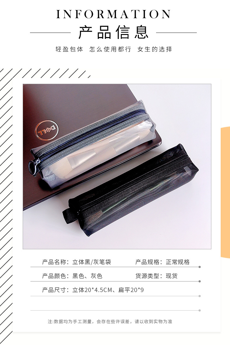 야외 여행을위한 3 차원 블랙 그레이 메쉬 필통 학생 문구 보관 가방 투명 문구 가방 필통