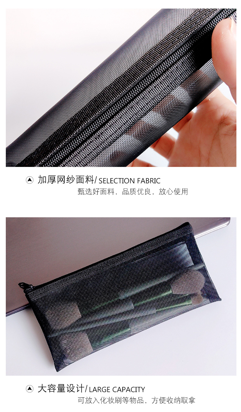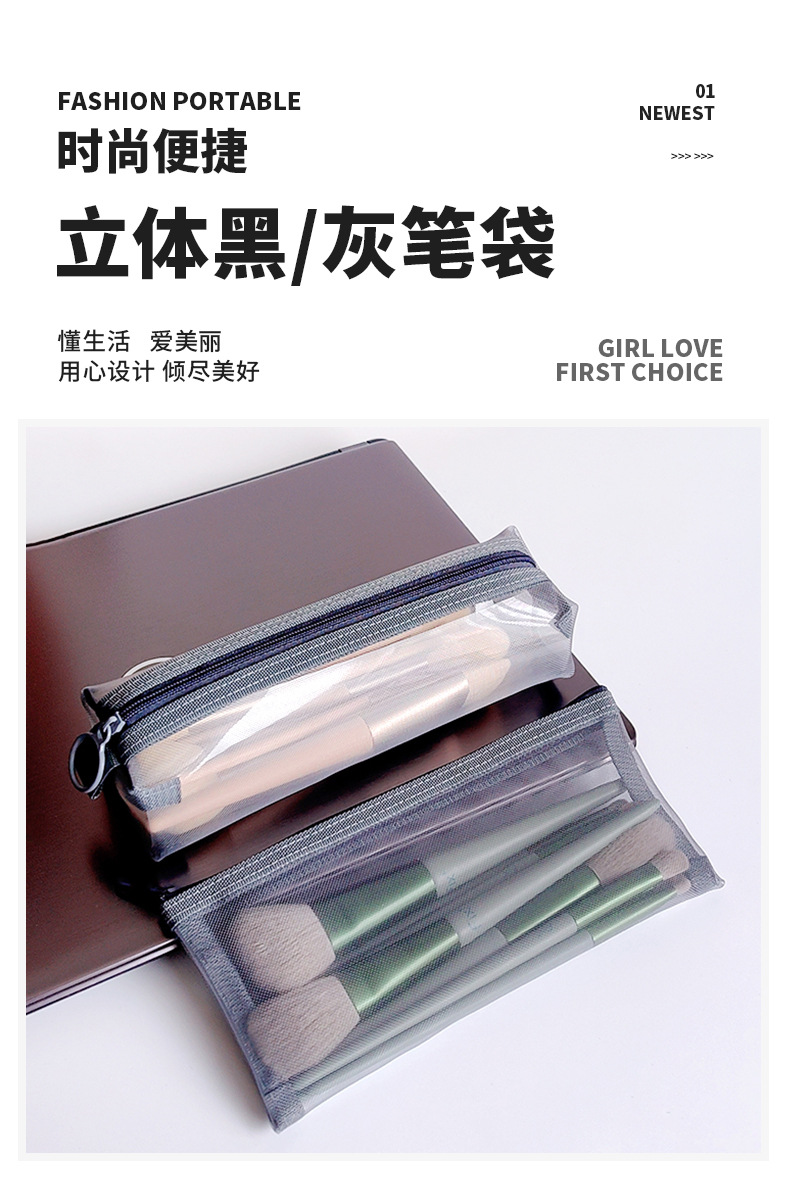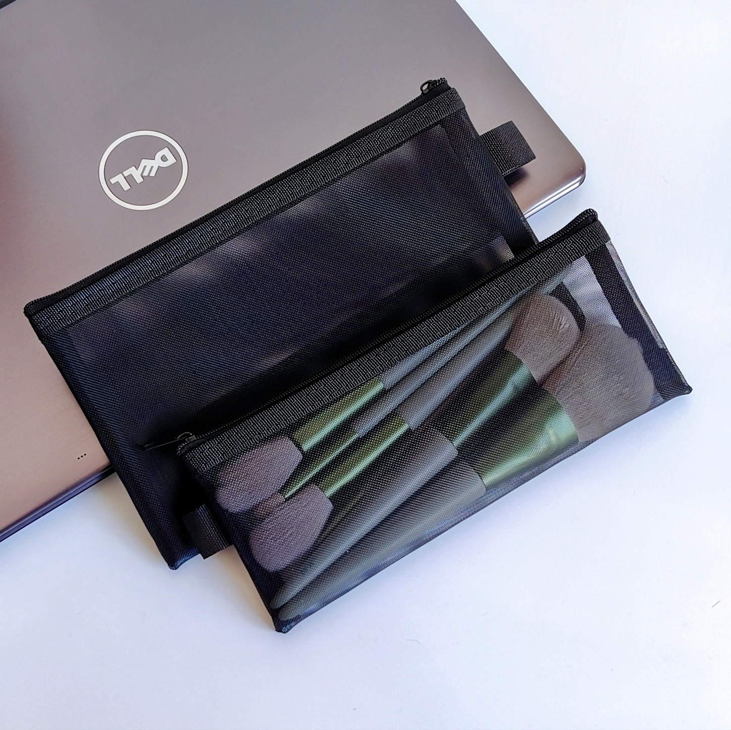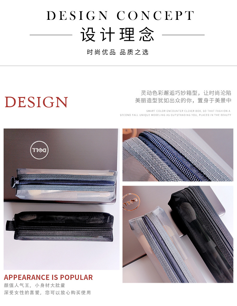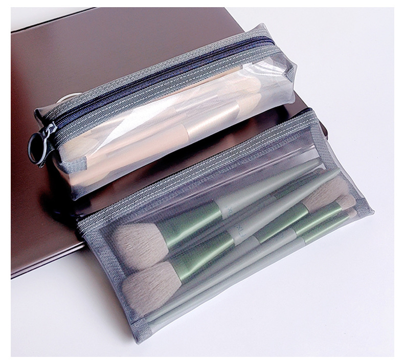 야외 여행을위한 3 차원 블랙 그레이 메쉬 필통 학생 문구 보관 가방 투명 문구 가방 필통