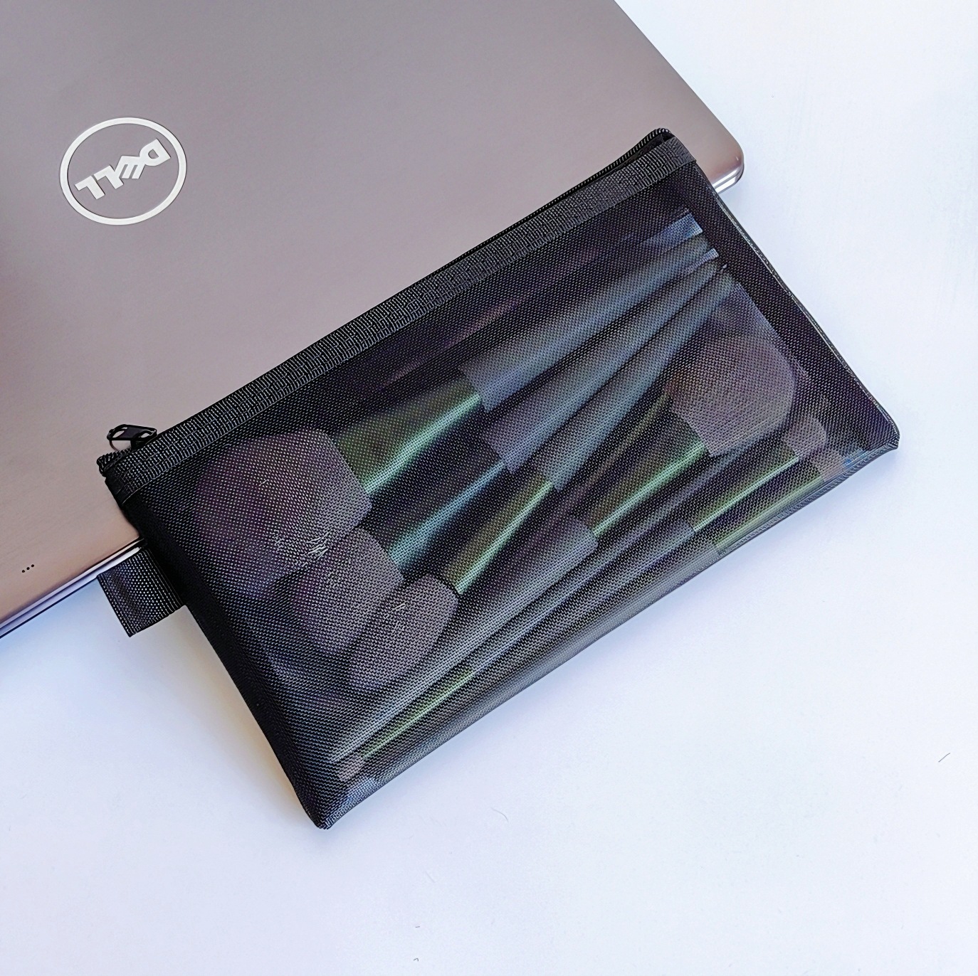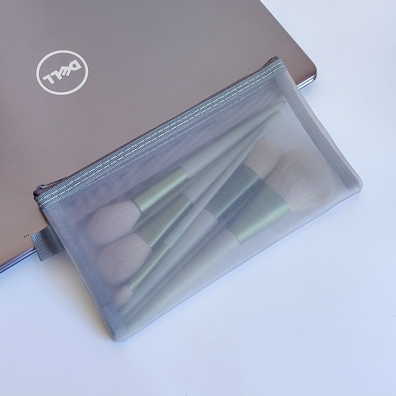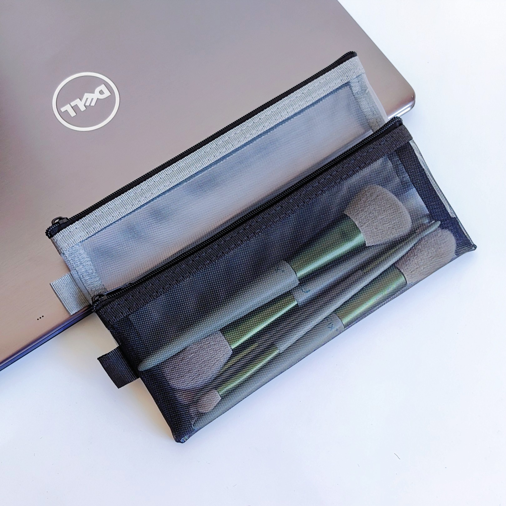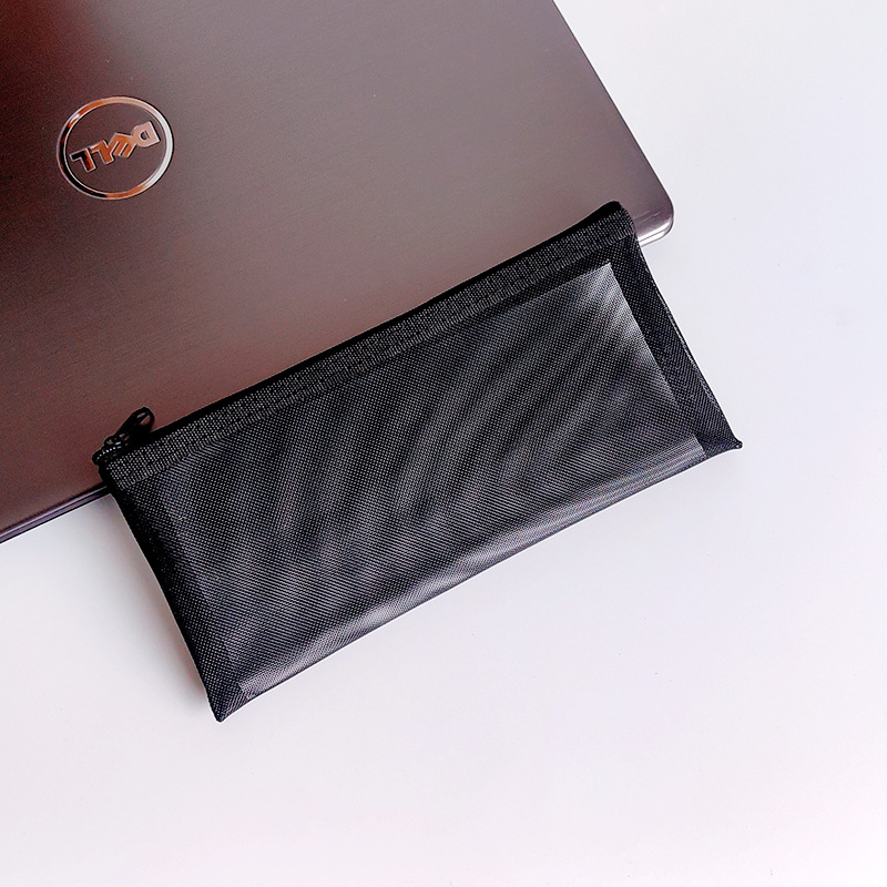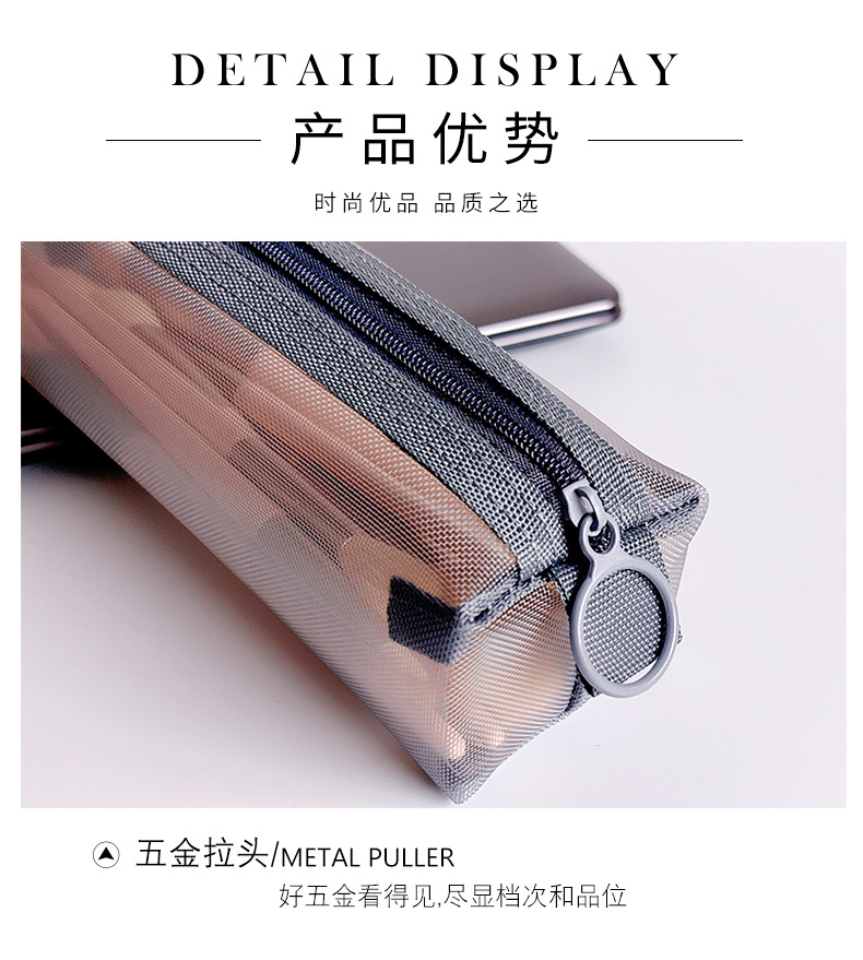 야외 여행을위한 3 차원 블랙 그레이 메쉬 필통 학생 문구 보관 가방 투명 문구 가방 필통