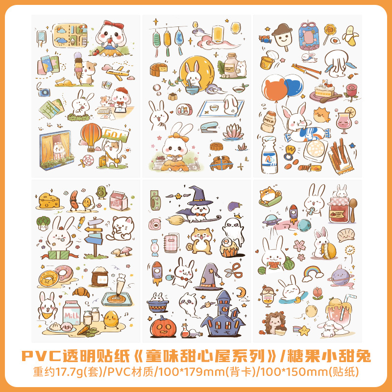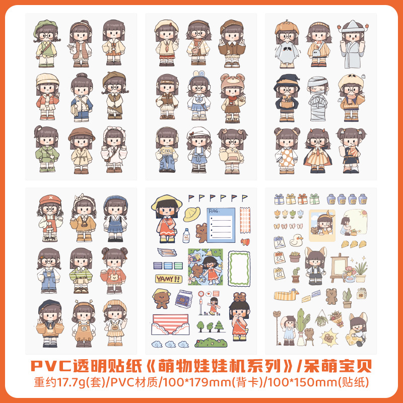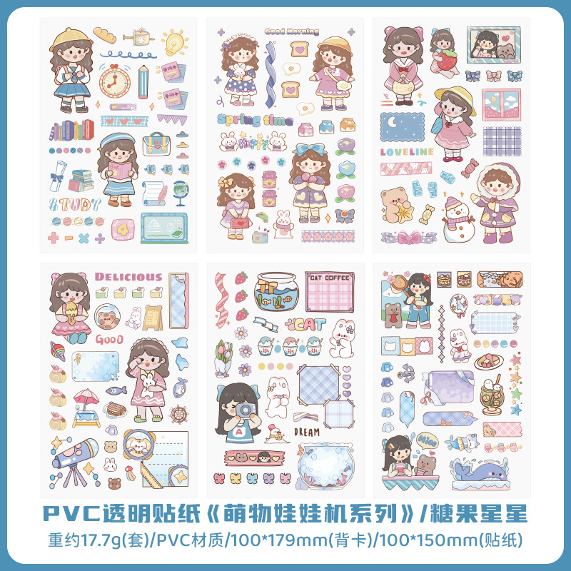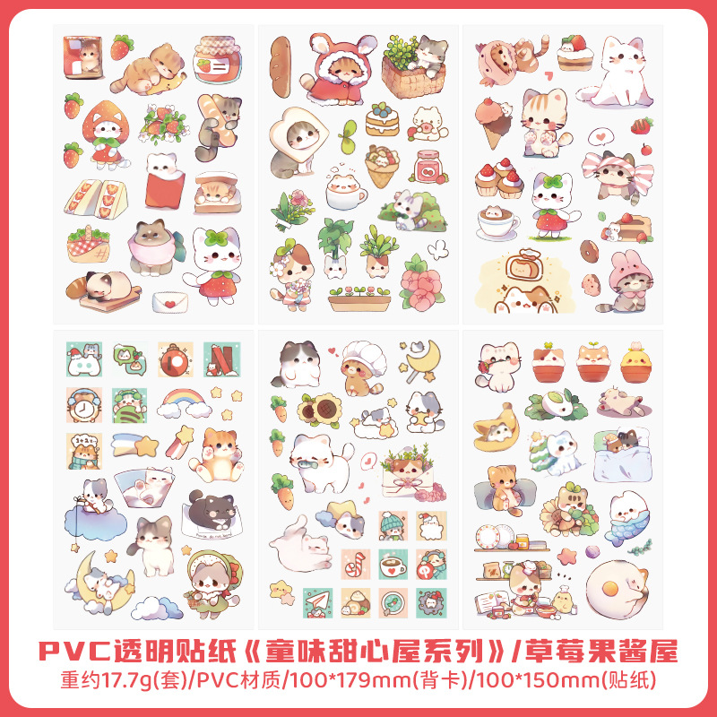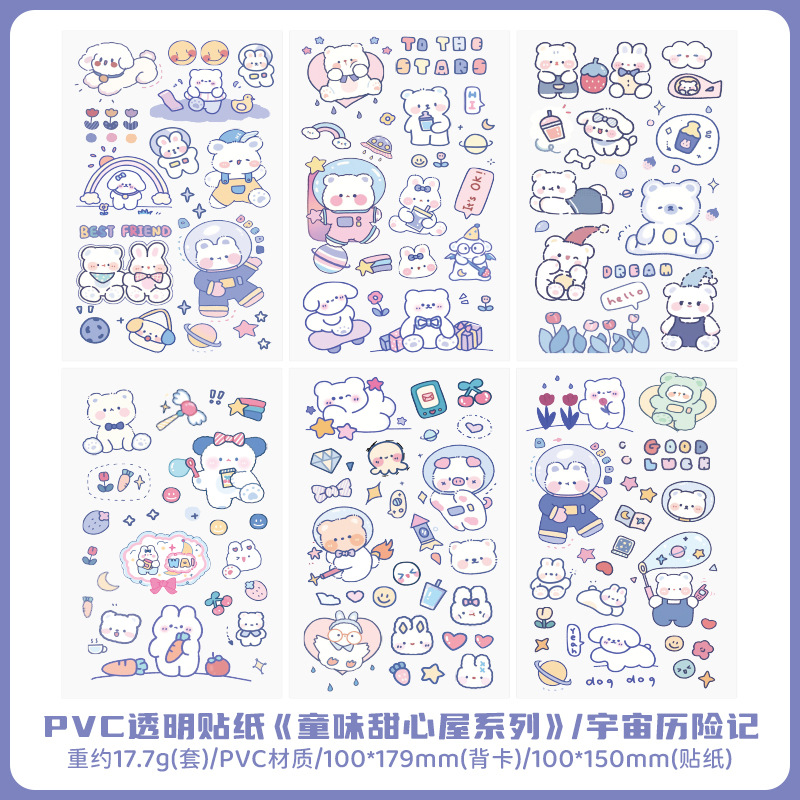 40 만화 귀여운 투명 방수 PVC 스티커 DIY 손 계정 일기 장식 재료 스티커 만화 컵 스티커