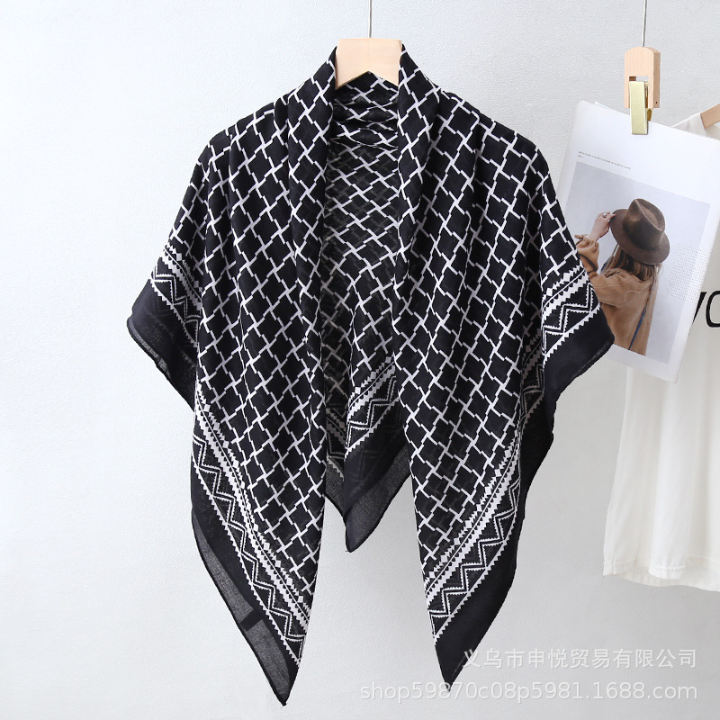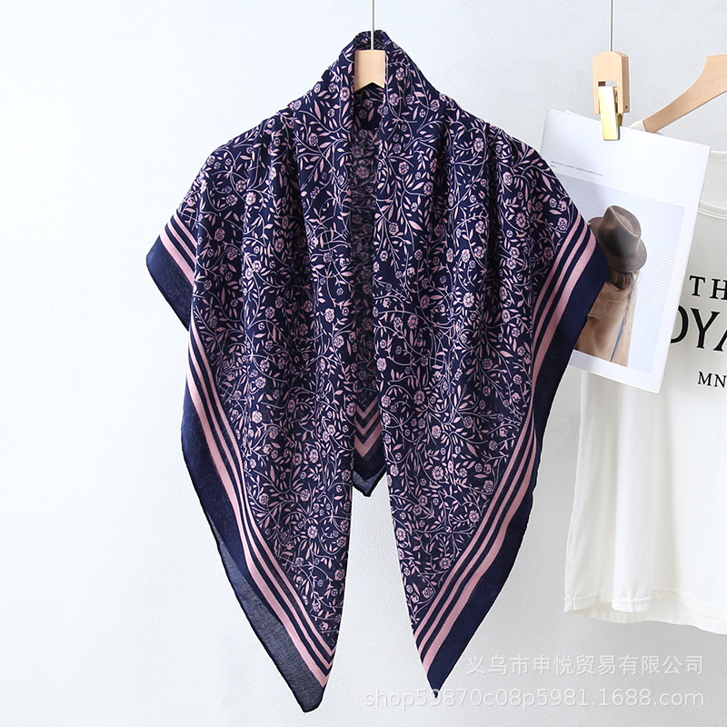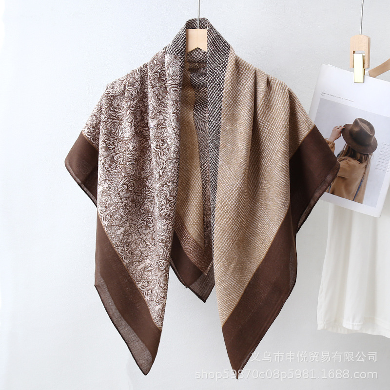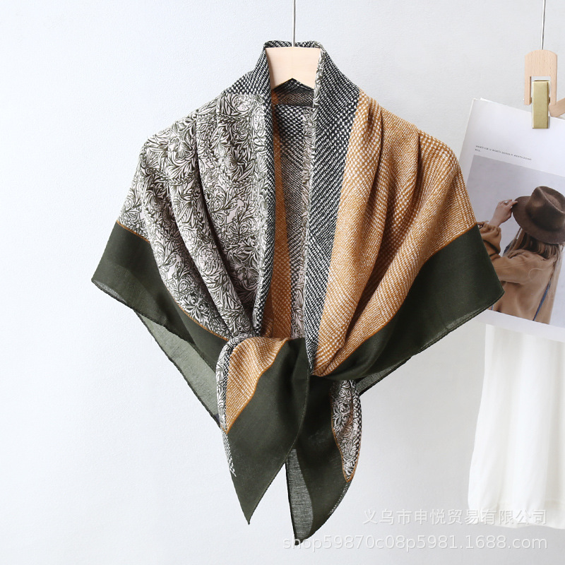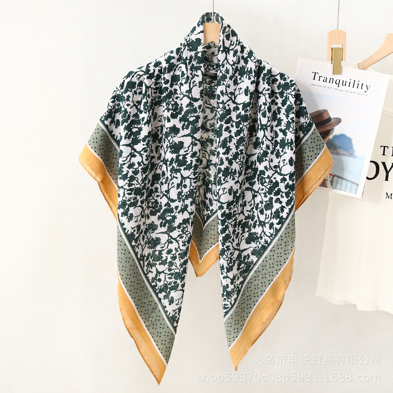국경 간 대외 무역 봄과 여름 올 매치 컬러 인쇄 면 및 리넨 손 느낌 대형 스퀘어 선 스크린 목도리 얇은 스카프 여성 터번