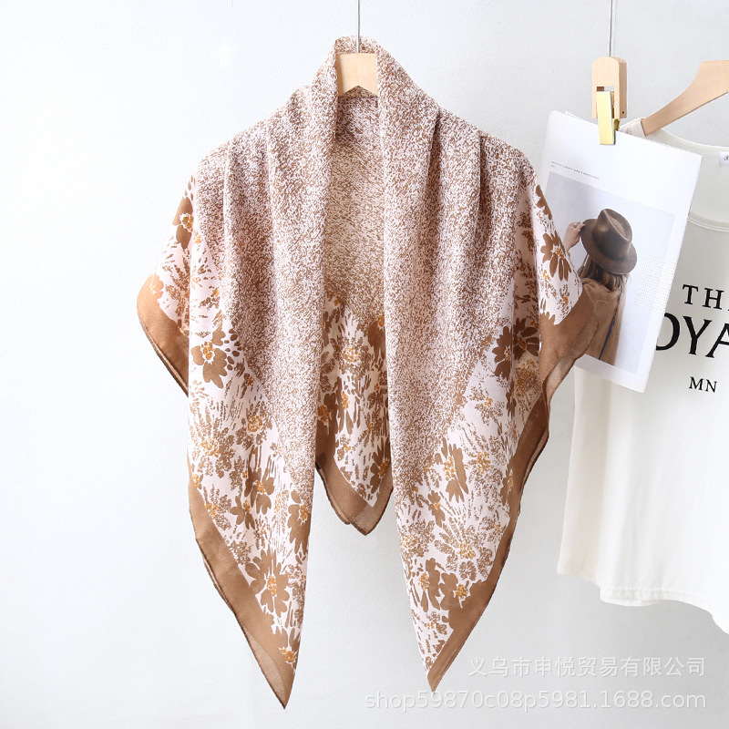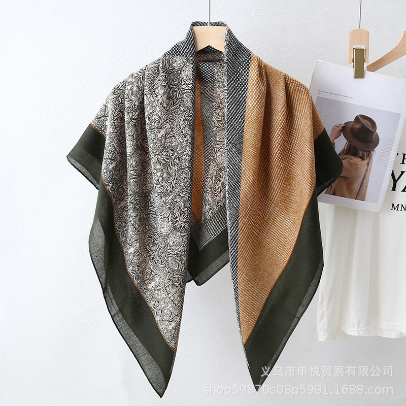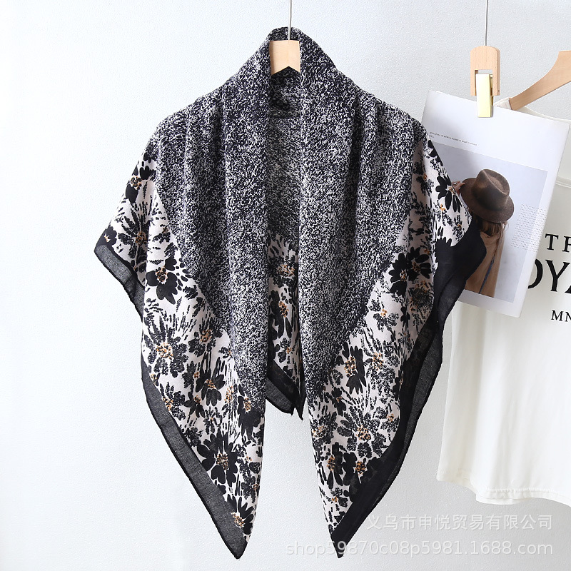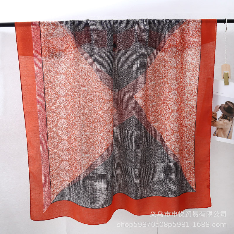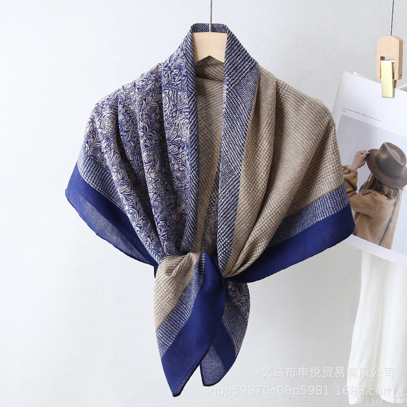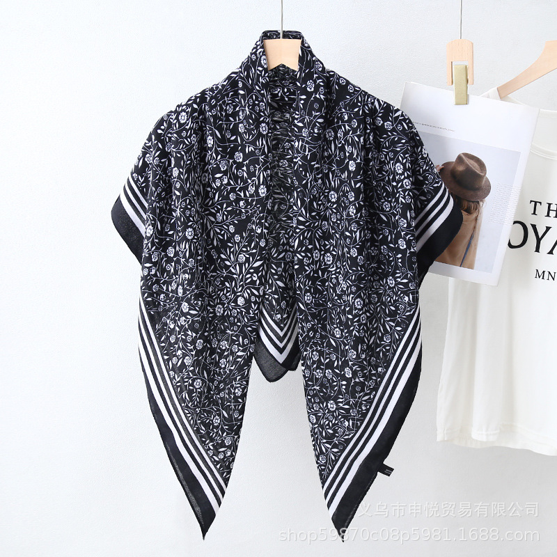 국경 간 대외 무역 봄과 여름 올 매치 컬러 인쇄 면 및 리넨 손 느낌 대형 스퀘어 선 스크린 목도리 얇은 스카프 여성 터번
