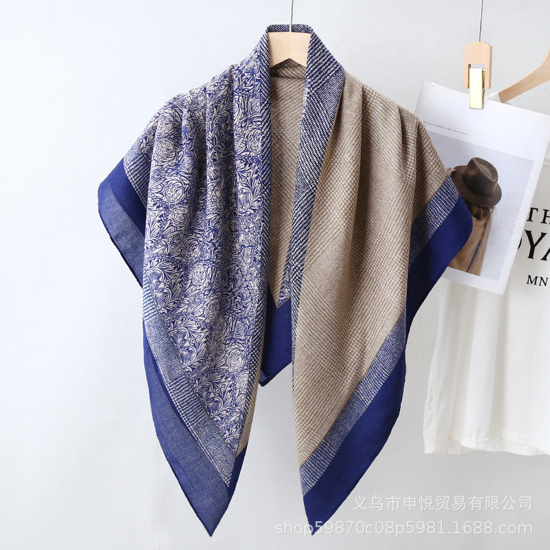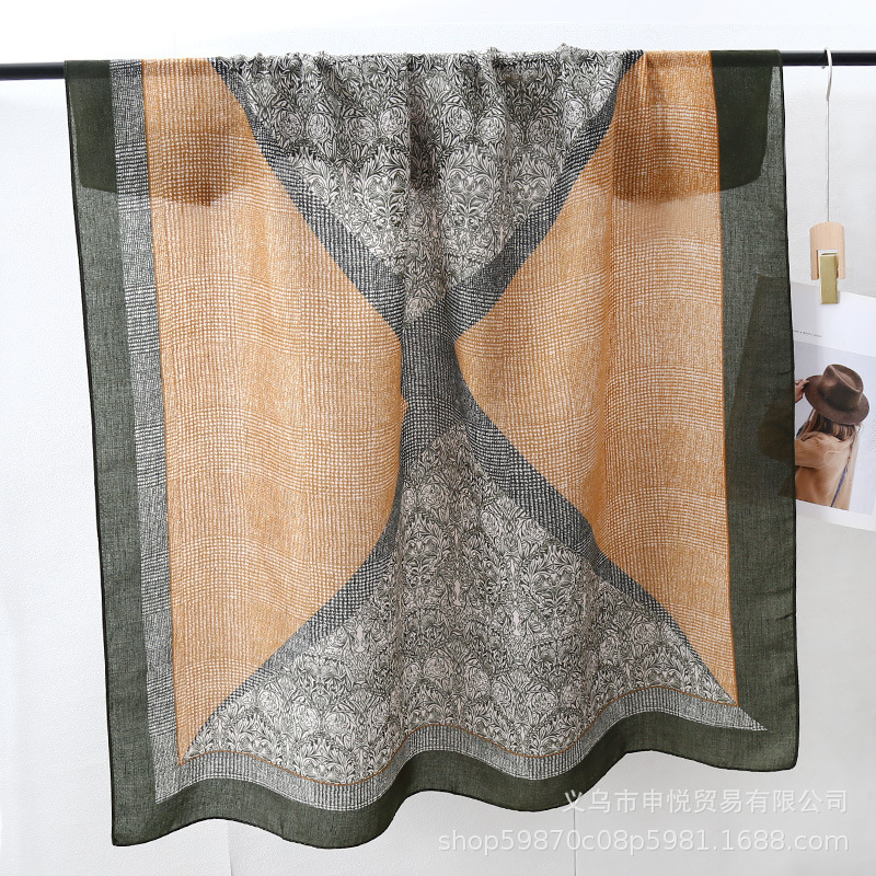 국경 간 대외 무역 봄과 여름 올 매치 컬러 인쇄 면 및 리넨 손 느낌 대형 스퀘어 선 스크린 목도리 얇은 스카프 여성 터번스토어 가기