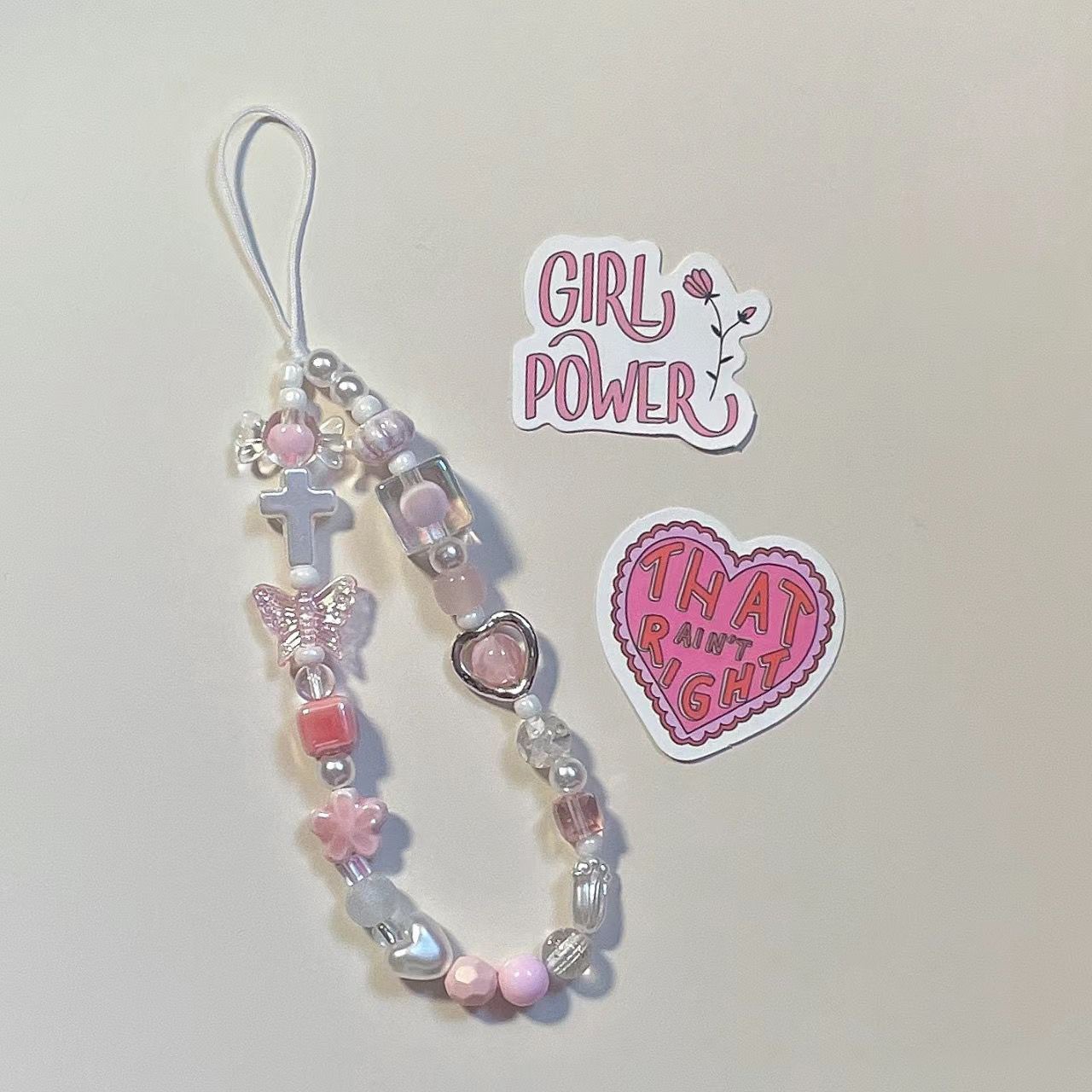 핑크 꽃 사랑 휴대 전화 액세서리 벚꽃 색상 시리즈 ccd 카메라 전화 밧줄 휴대 전화 케이스 끈 휴대 전화 체인 부드러운 크로스 보더스토어 가기