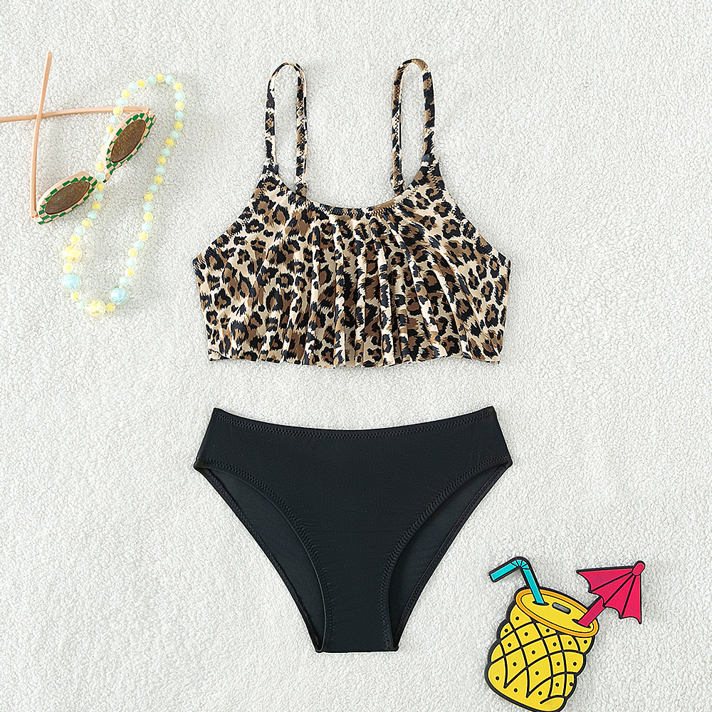 어린이 수영복 스플릿 투피스 수영복 여름 소녀 유럽과 미국 레오파드 무늬 비키니 수영복