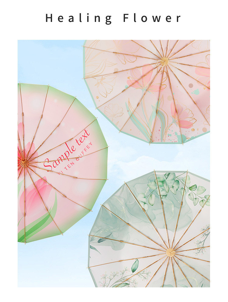 • 튤립/16 본 골드 막대 컬러 접착제 우산