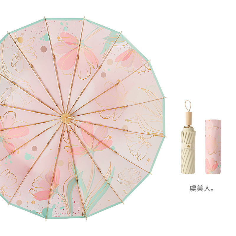 신 3 겹 16 골드폴 복합 컬러 접착제 양산 우산 자외선 차단제 UV 레트로 비 이중 사용 태양 우산스토어 가기
