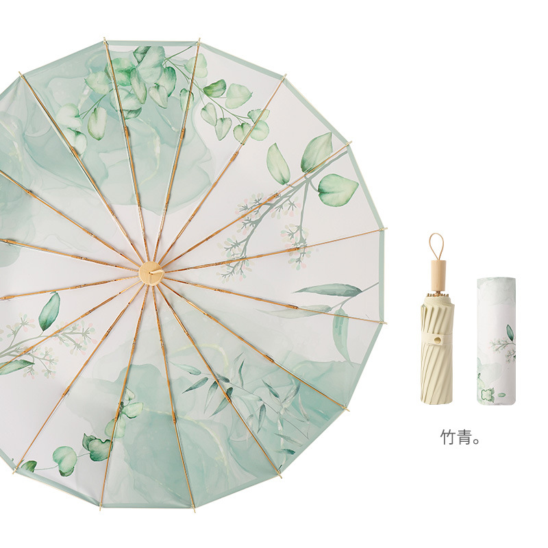 • 대나무 그린/16 본 골드 컬러 접착제 우산