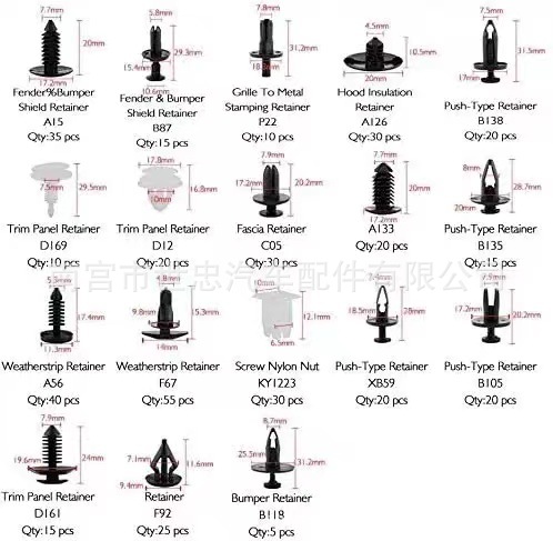 447PC 박스형 버클 자동차 도어 라이닝 장식 범퍼 플라스틱 확장 리벳 세트 버클