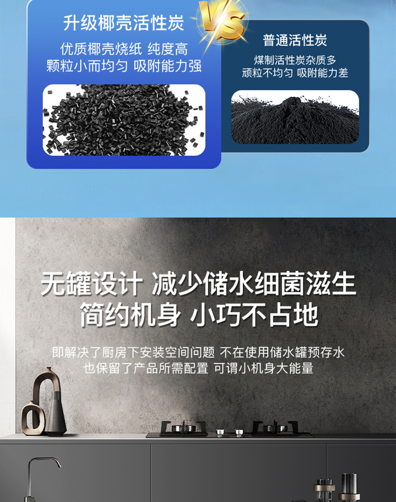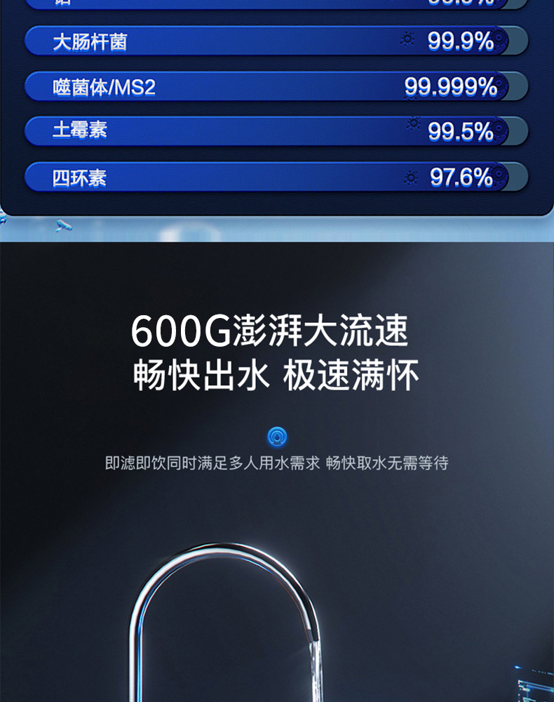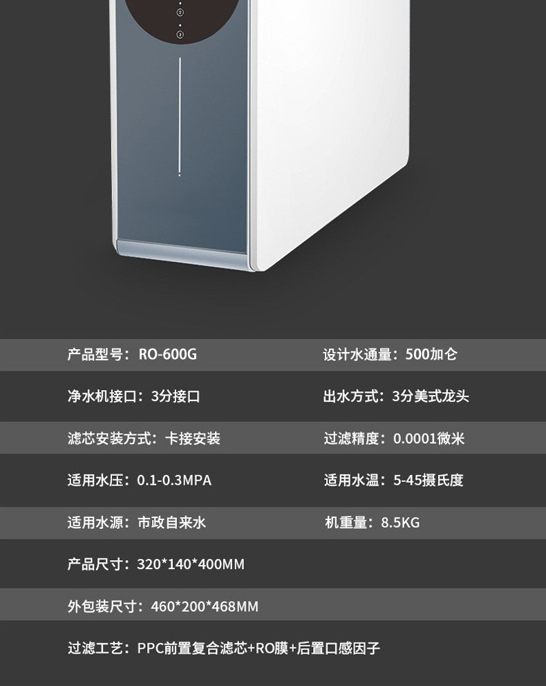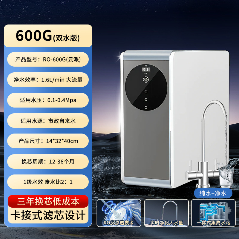 600G 직수형 주방용 RO 역삼투압 정수기, 주방 수도 필터, 가정용 정수기, 물때 제거