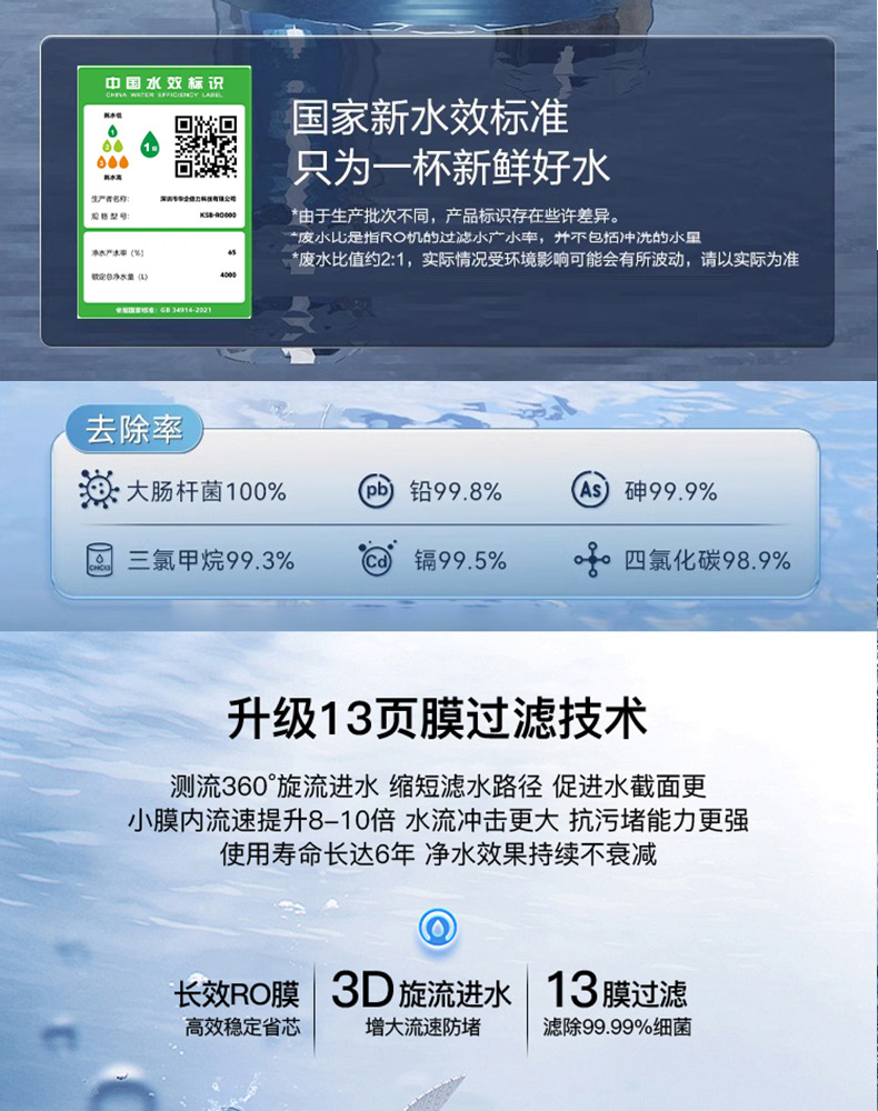 600G 직수형 주방용 RO 역삼투압 정수기, 주방 수도 필터, 가정용 정수기, 물때 제거스토어 가기