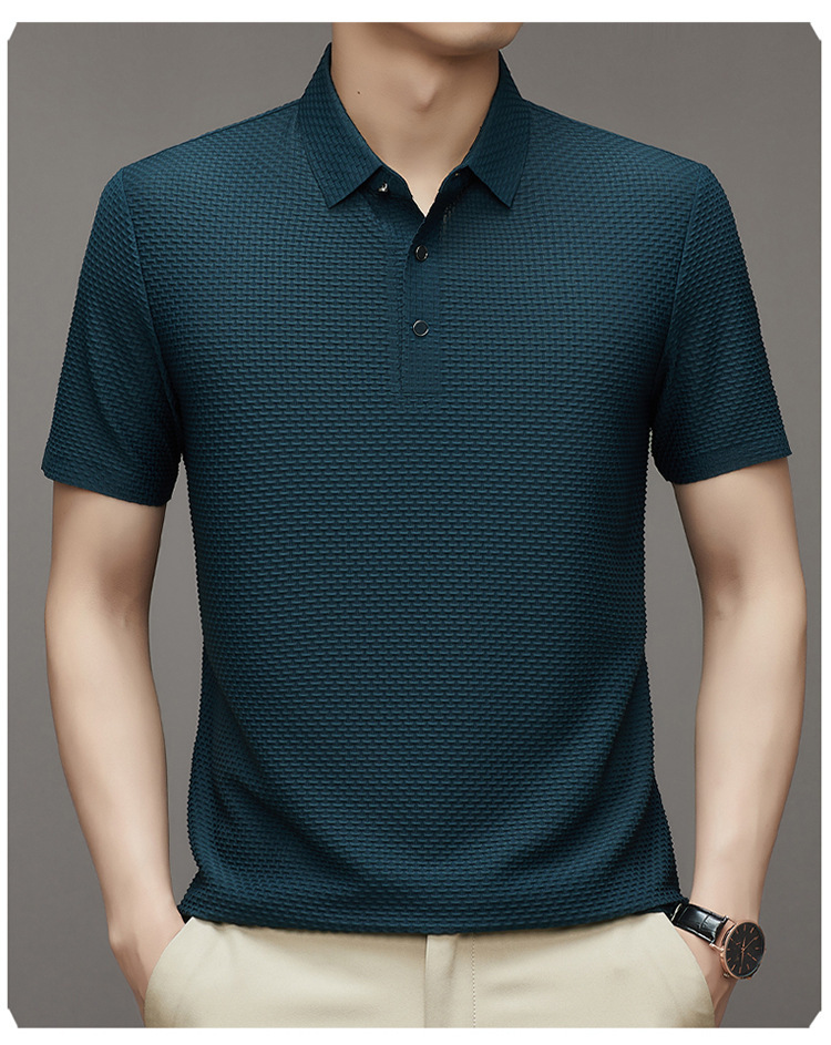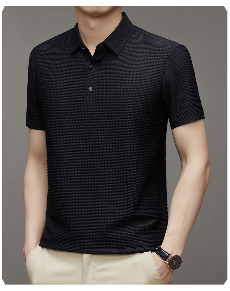 夏季男士短袖T恤翻领修身弹力中年凹凸提花男装半袖体恤直播代发