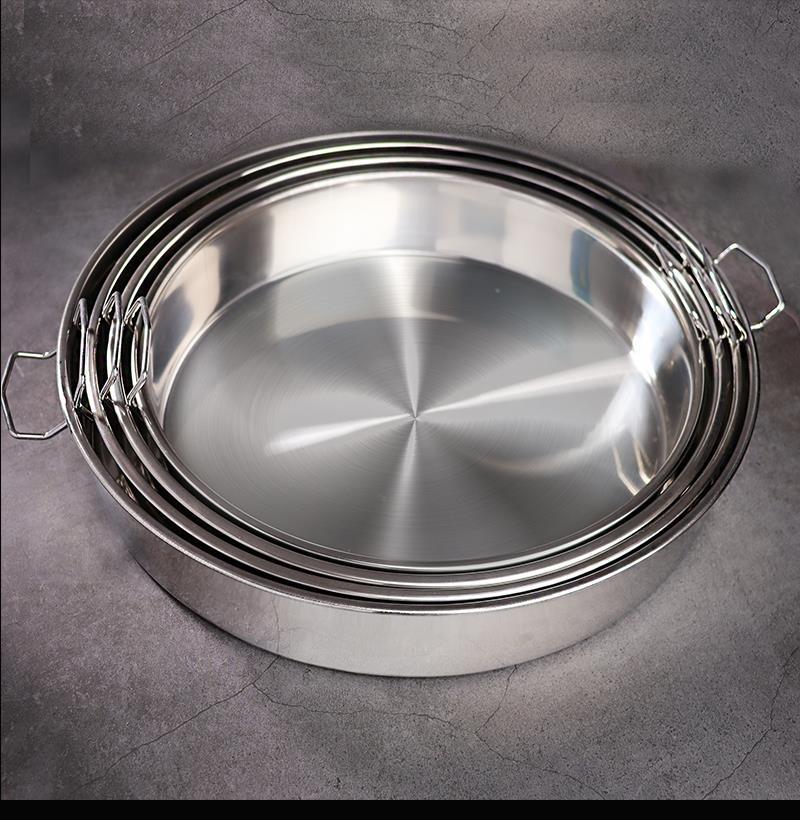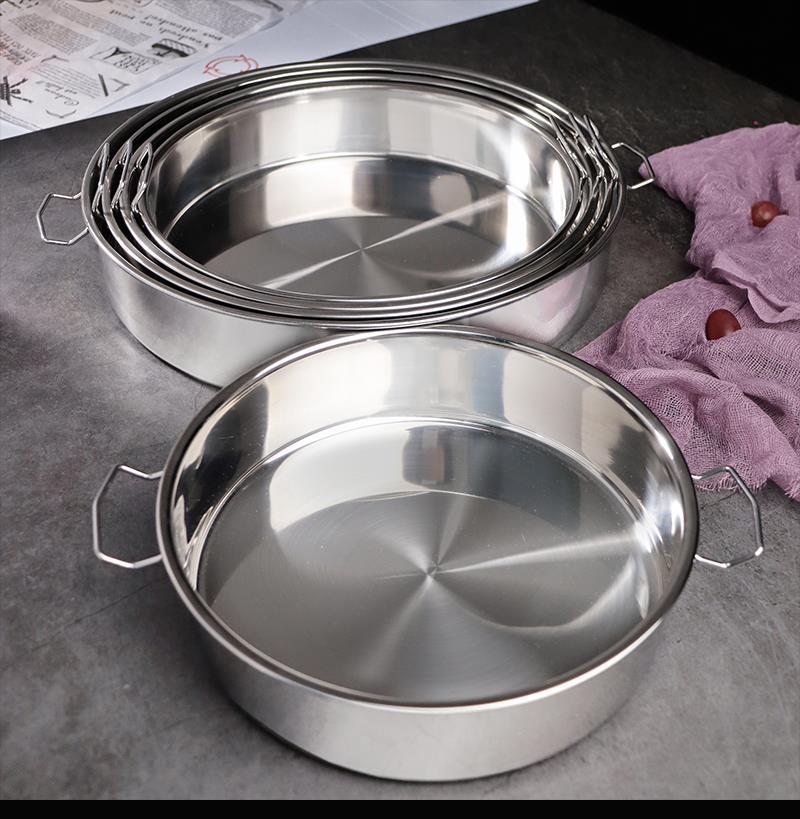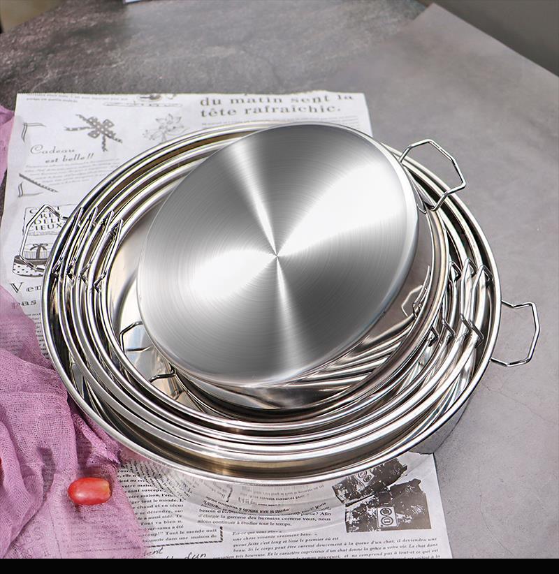 304 스테인레스 차가운 피부 공 접시 바 이노 럴 원형 대형 케이크 접시 만들기 도구 플랫 바닥 찜 접시 밥 접시 트레이