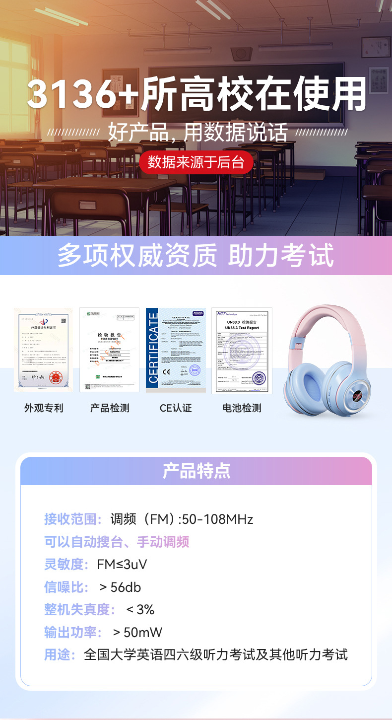 그라디언트 컬러 CET-4 및 CET-6 청취 헤드폰 대학 영어 CET-4 특별 CET-8 특별 FmFM 테스트 특별 직접 배치스토어 가기