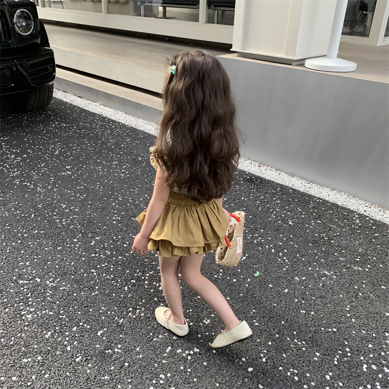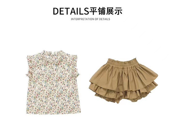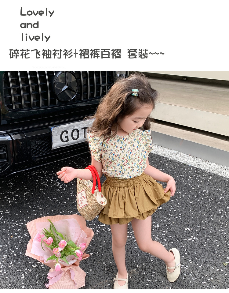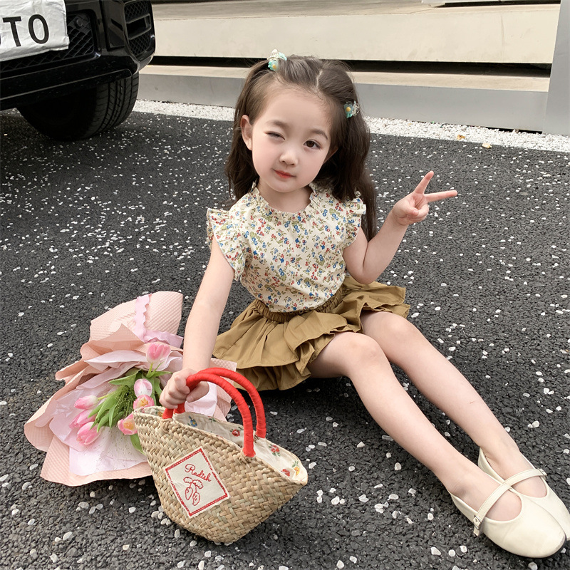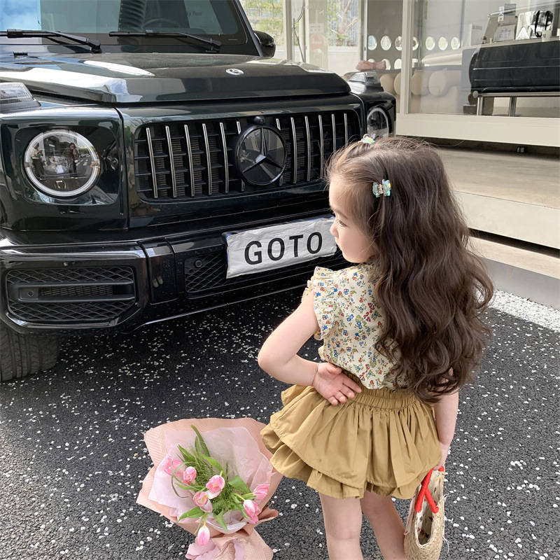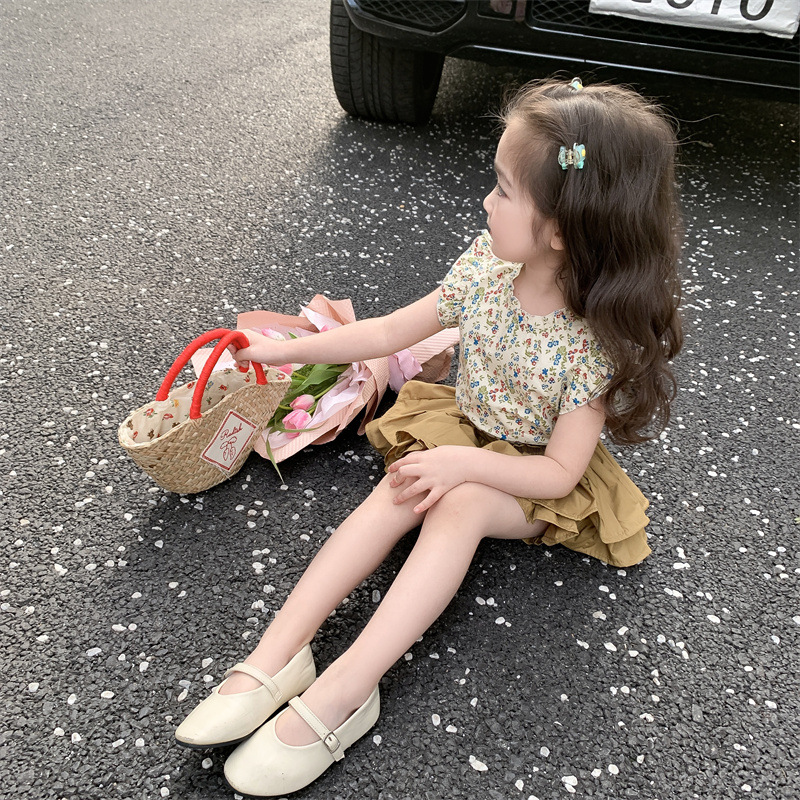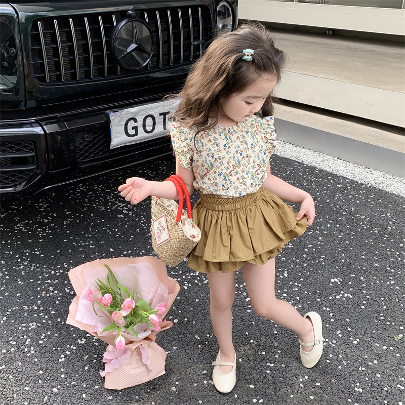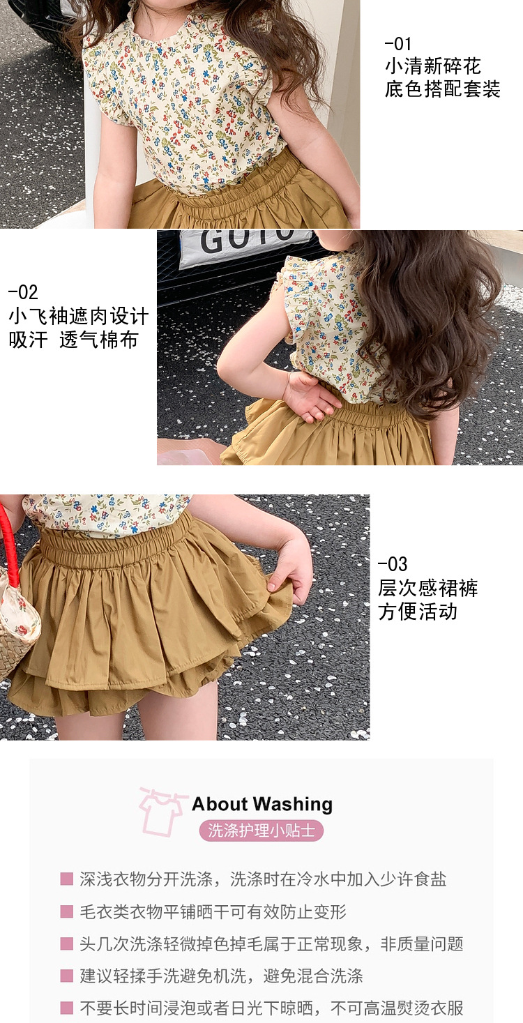 2023 새로운 어린이 꽃 세트 여아 퀼로트 투피스 면 여아 서양 스타일 한국 스타일 신선한 아동복스토어 가기
