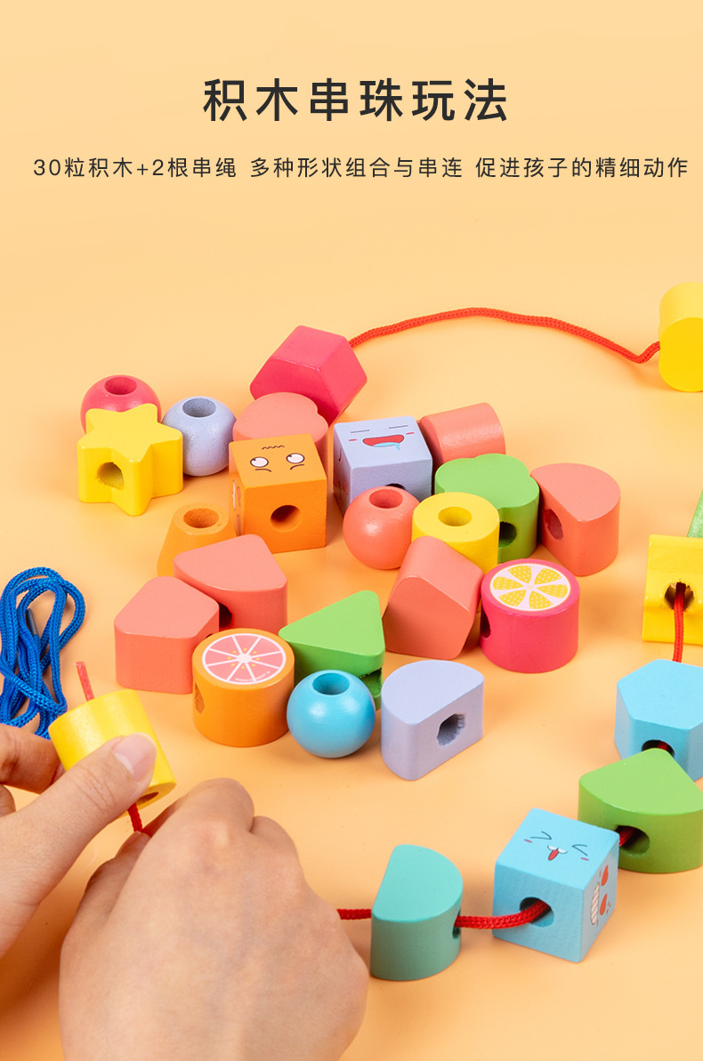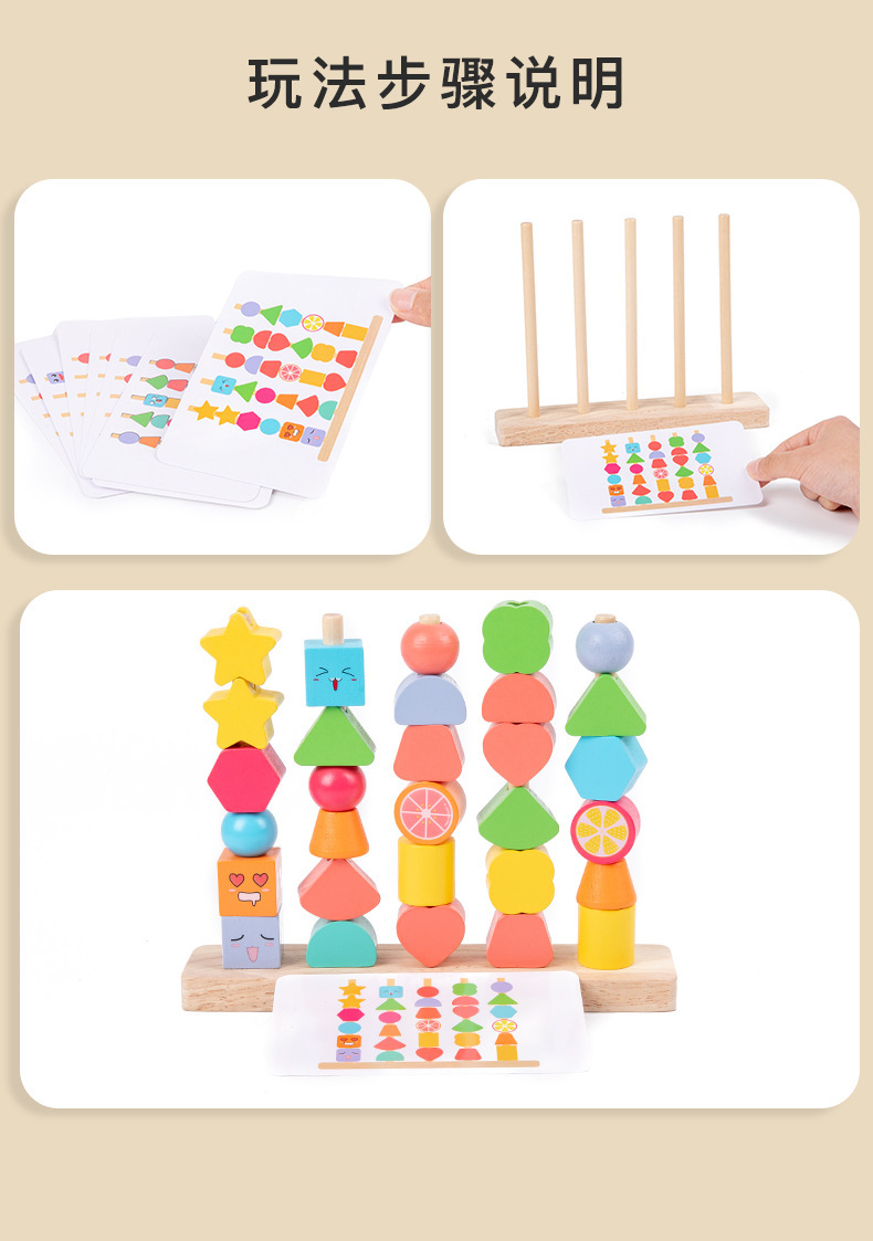 跨境新品形状配对套柱卡片串珠叠叠乐儿童木质积木玩具早教益智
