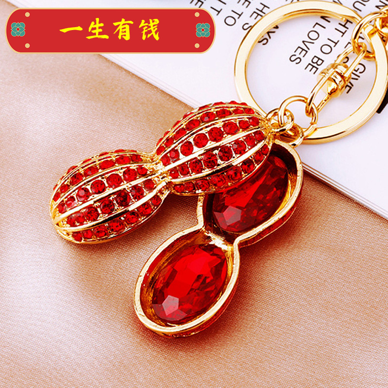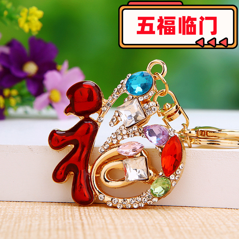 자동차 열쇠 고리, 남성용 및 여성용 가방 펜던트, 금속 열쇠 고리, 다이아몬드가 박힌 창의적인 비즈니스 선물로 의미가 있는 중국 트렌드 선물스토어 가기