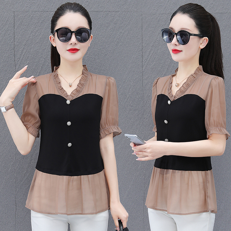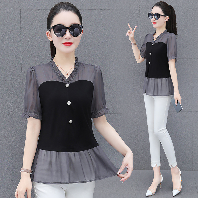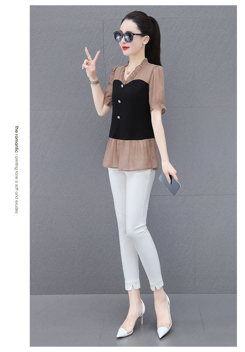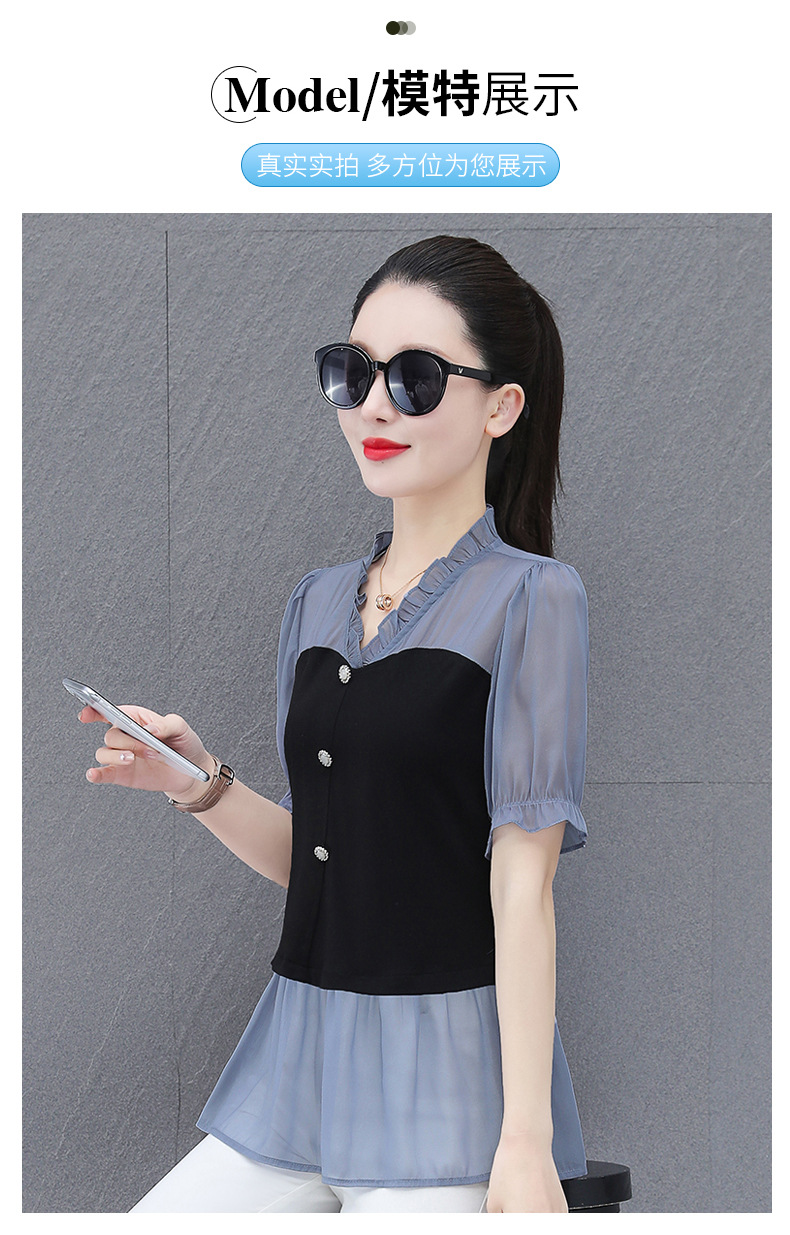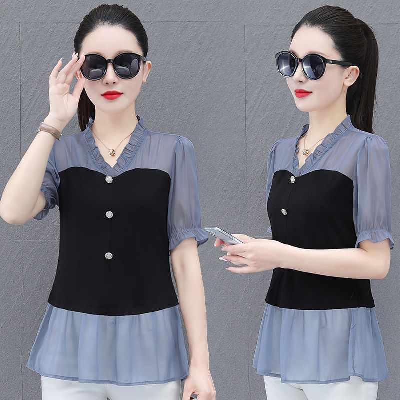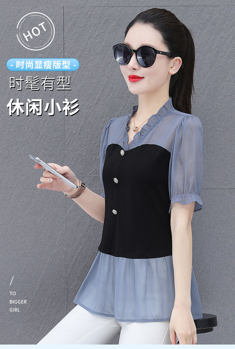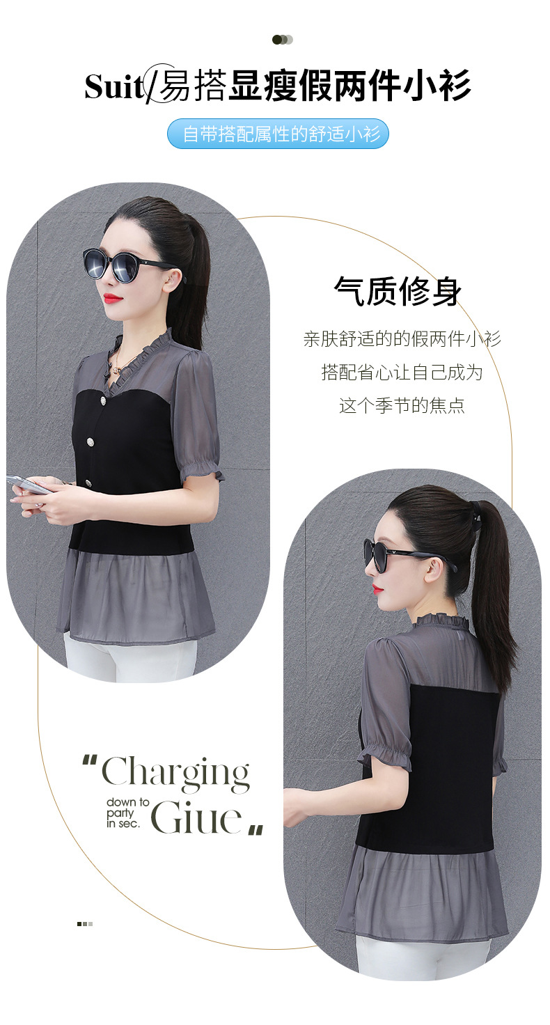가짜 투피스 웨이스트 셔츠 여성용 여름 2023 새로운 스타일 스몰 셔츠 디자인 감각 틈새 웨스턴 스타일 반팔 티셔츠 탑스토어 가기