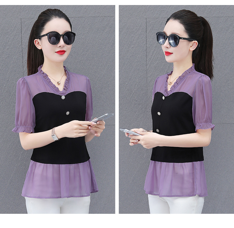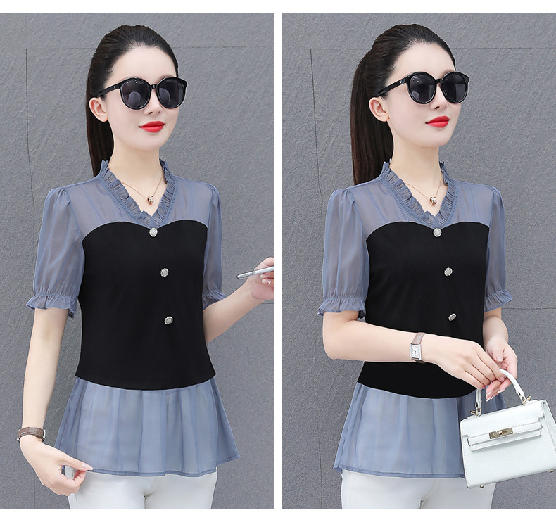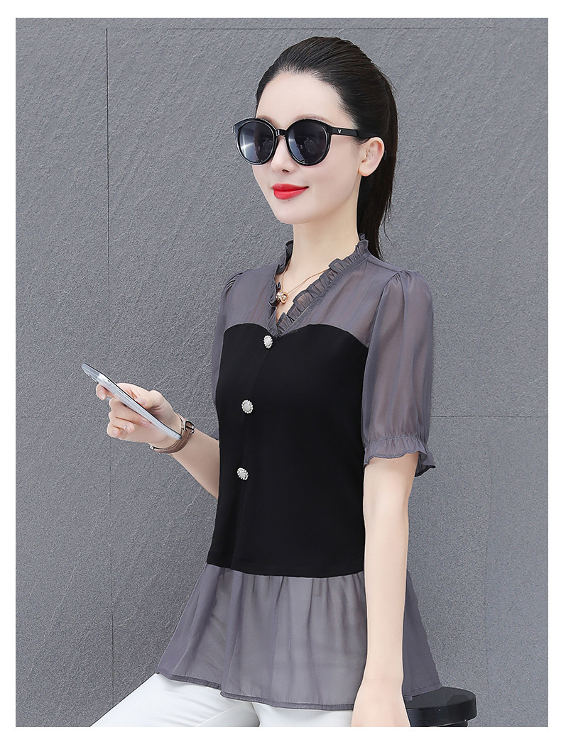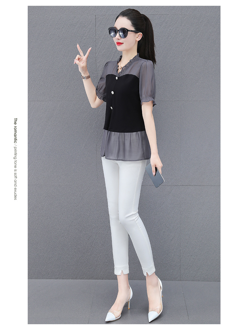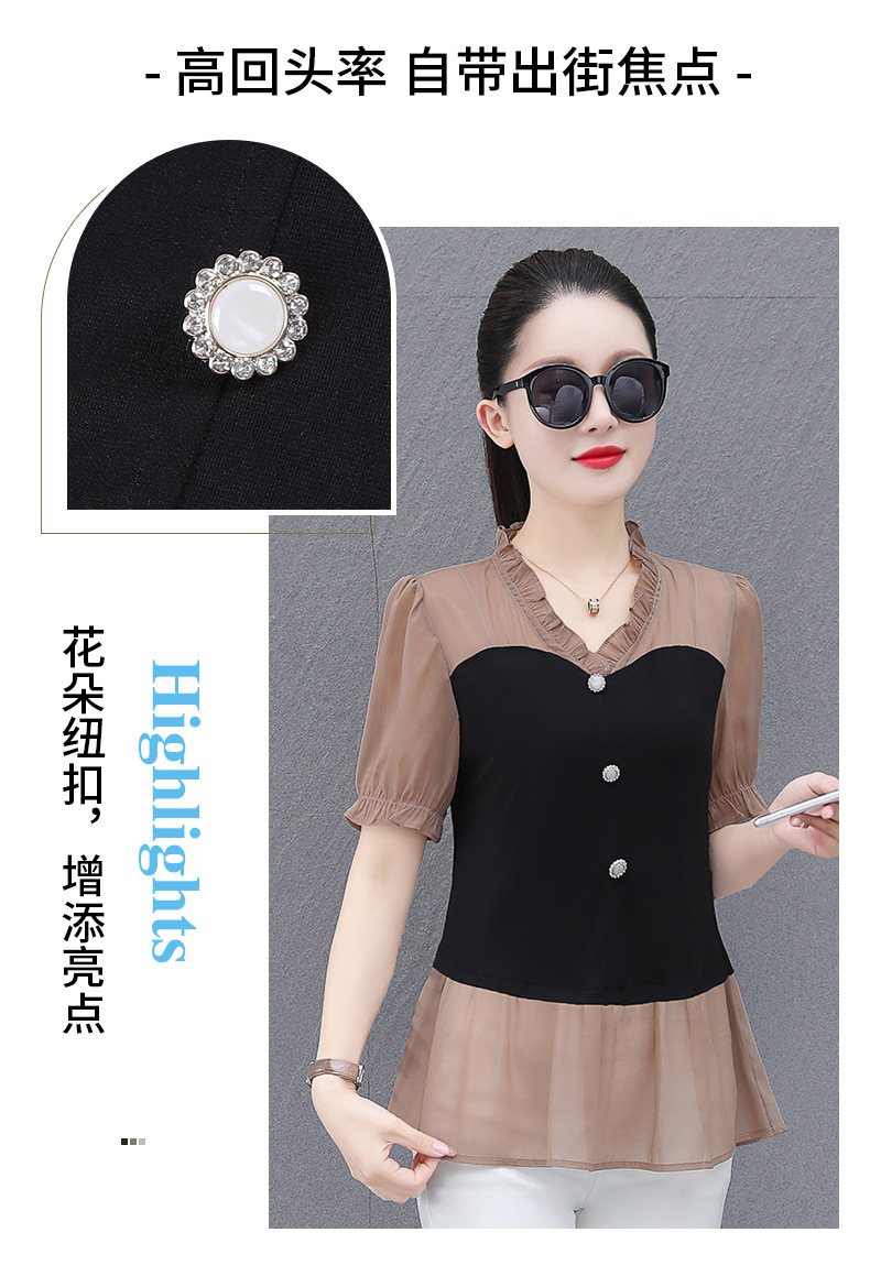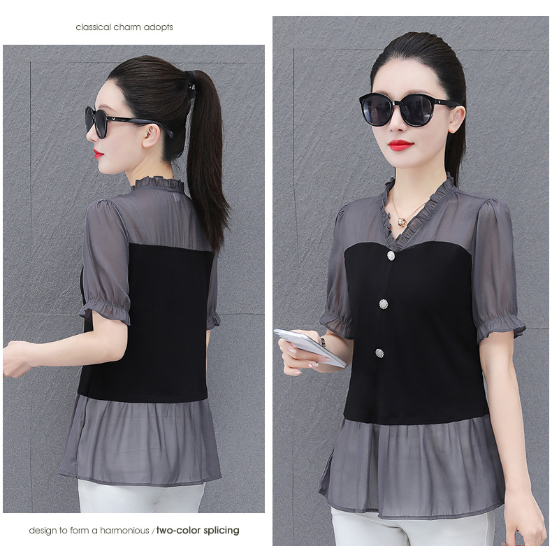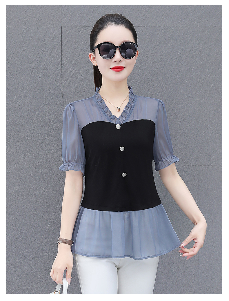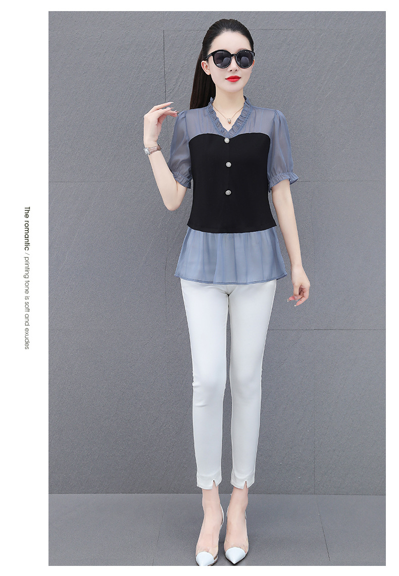 가짜 투피스 웨이스트 셔츠 여성용 여름 2023 새로운 스타일 스몰 셔츠 디자인 감각 틈새 웨스턴 스타일 반팔 티셔츠 탑스토어 가기