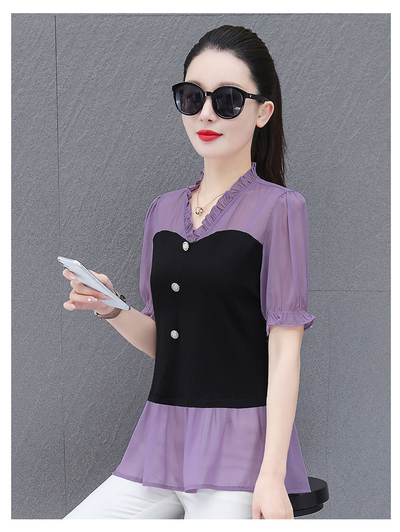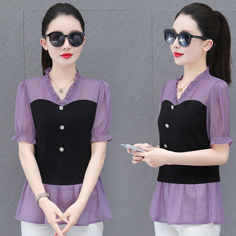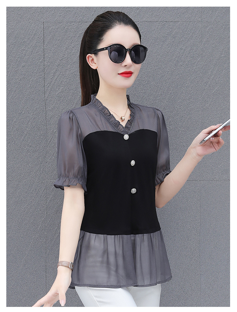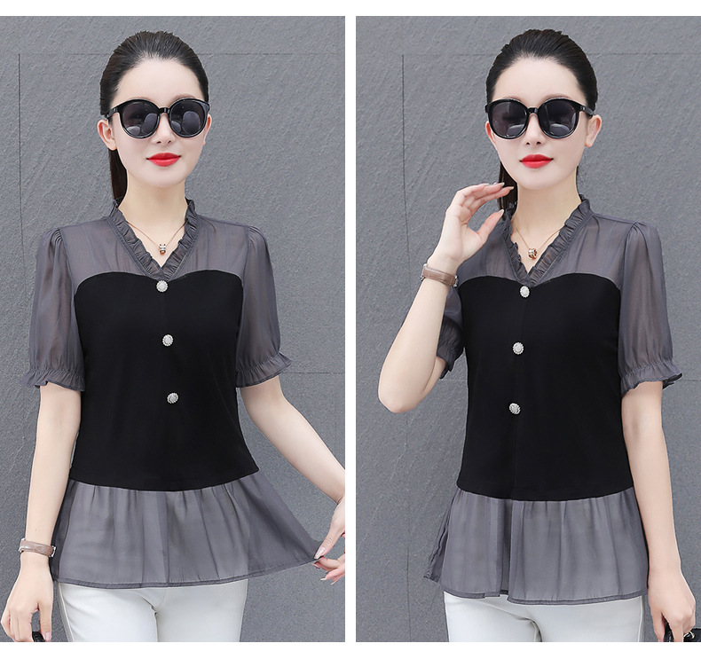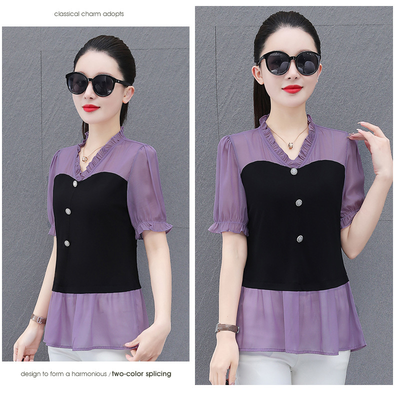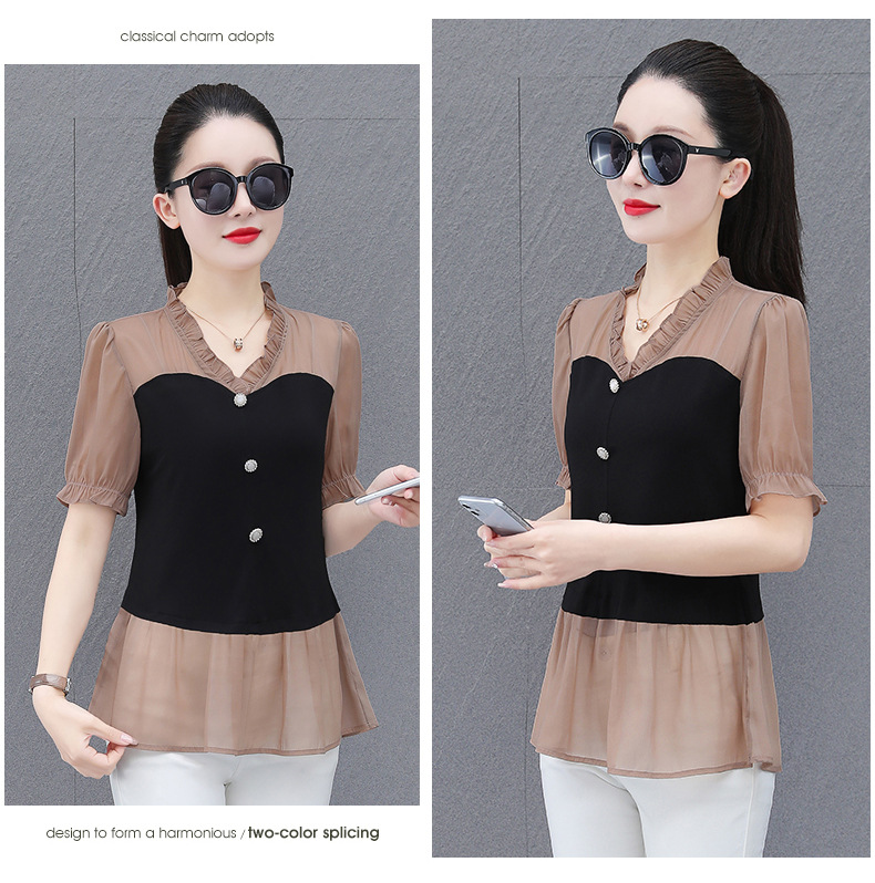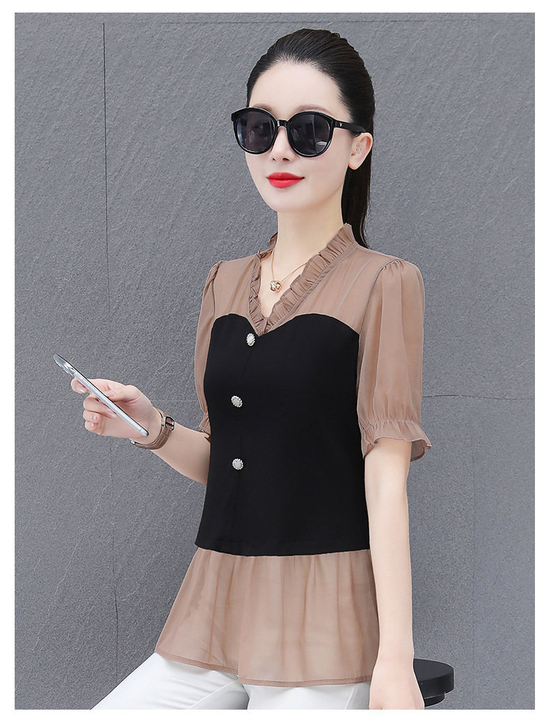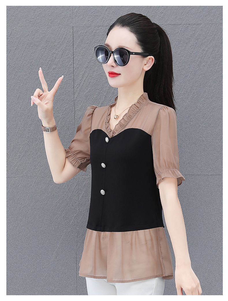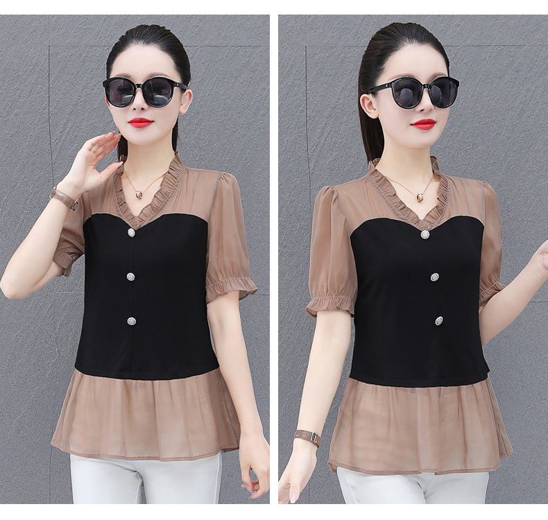 가짜 투피스 웨이스트 셔츠 여성용 여름 2023 새로운 스타일 스몰 셔츠 디자인 감각 틈새 웨스턴 스타일 반팔 티셔츠 탑스토어 가기