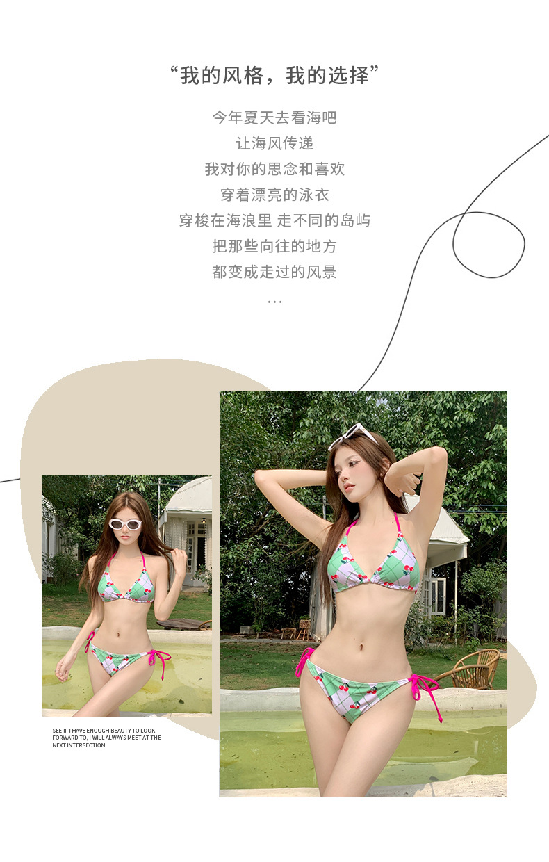 신선한 체리 수영복 여자의 한국 새로운 분할 순수한 욕망 스타일 교수형 목 작은 가슴 모인 Biji 휴가 수영복스토어 가기