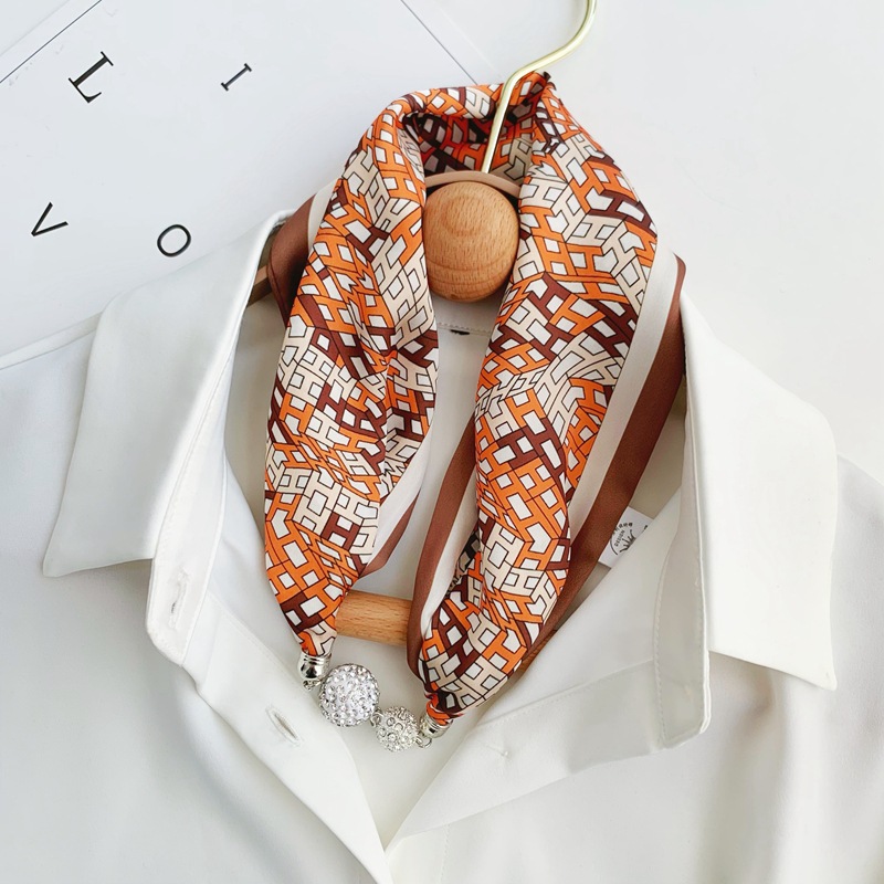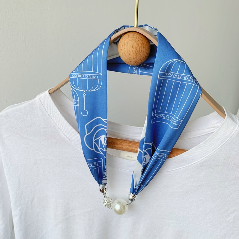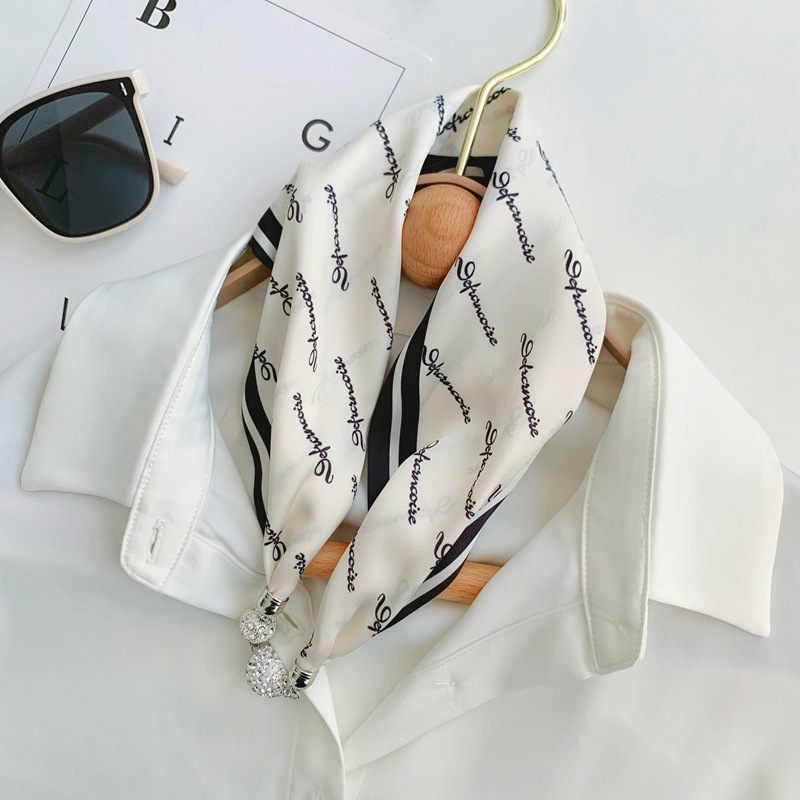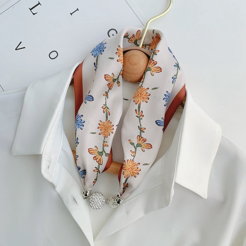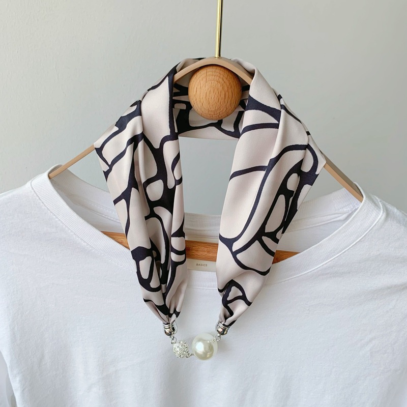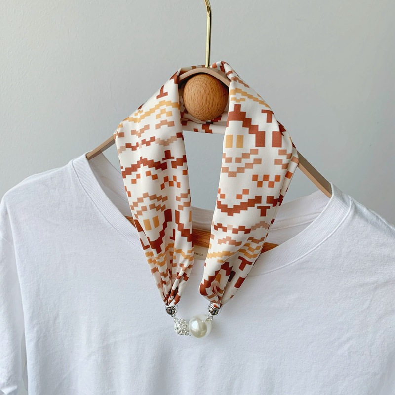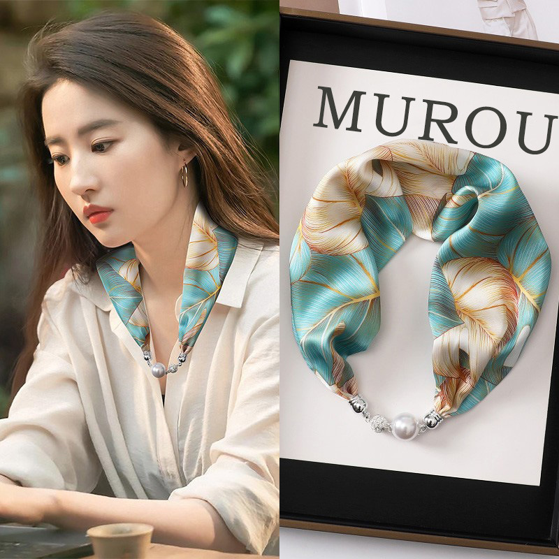 마그네틱 버클 작은 실크 스카프 여성용 2023 새로운 여름 스카프 어머니 선물 진주 목걸이 고급 매칭 셔츠