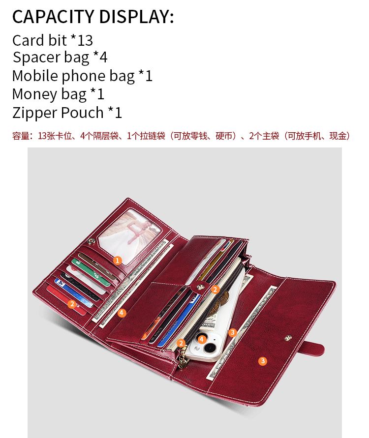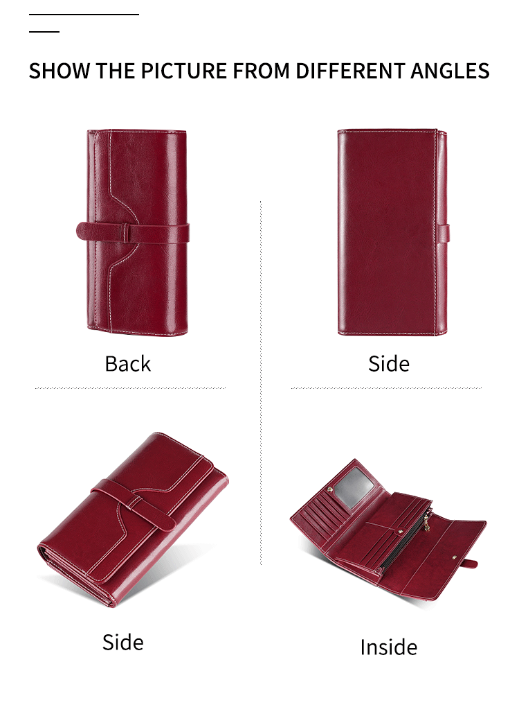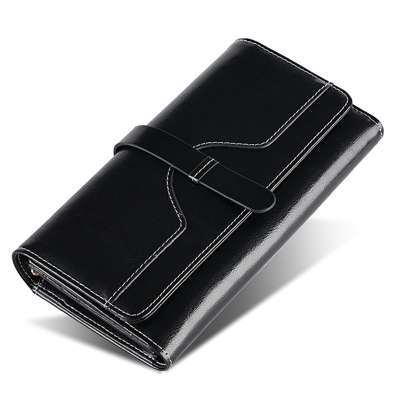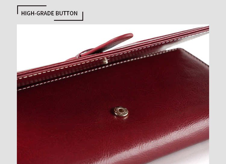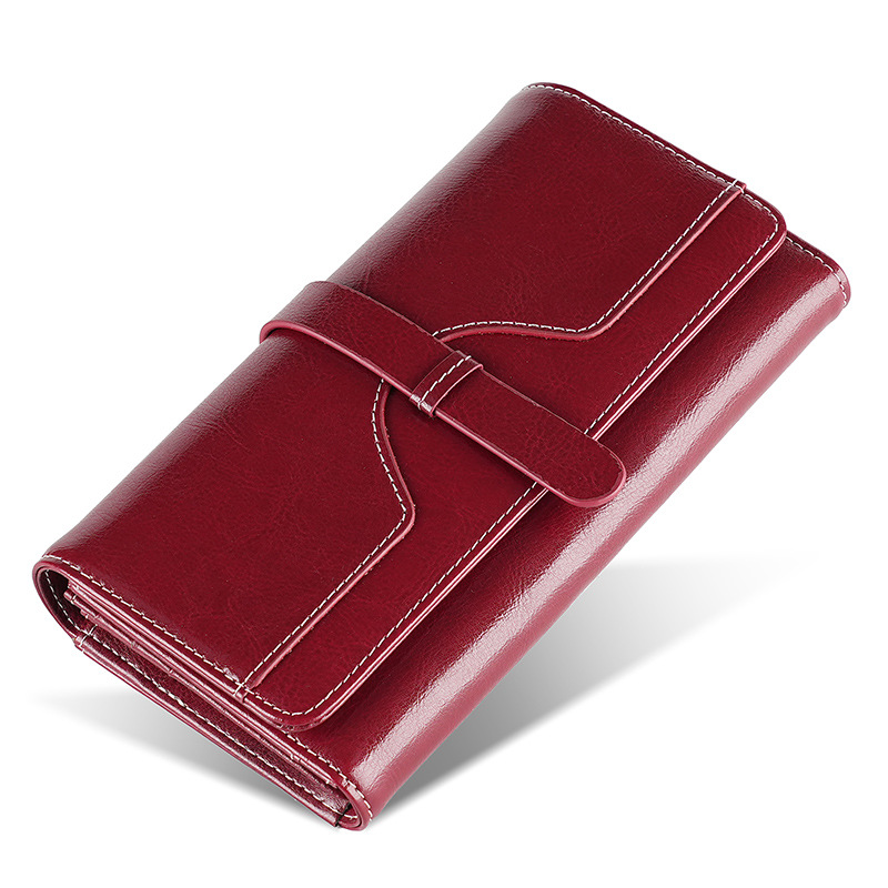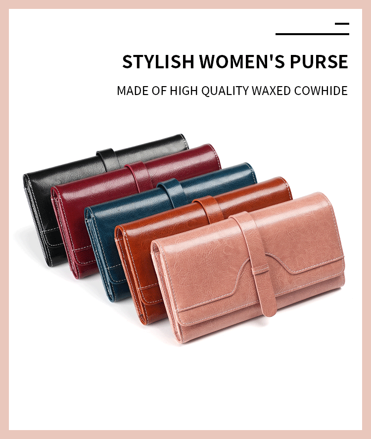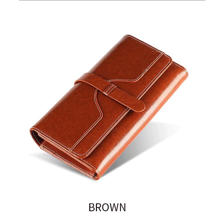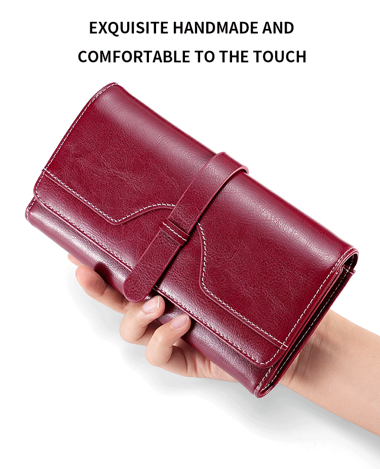 정품 가죽 지갑 여성용 고급 롱 클러치 백 오일 왁스 가죽 빈티지 여성 가방 다기능 RFID 도난 방지 브러시 지갑스토어 가기
