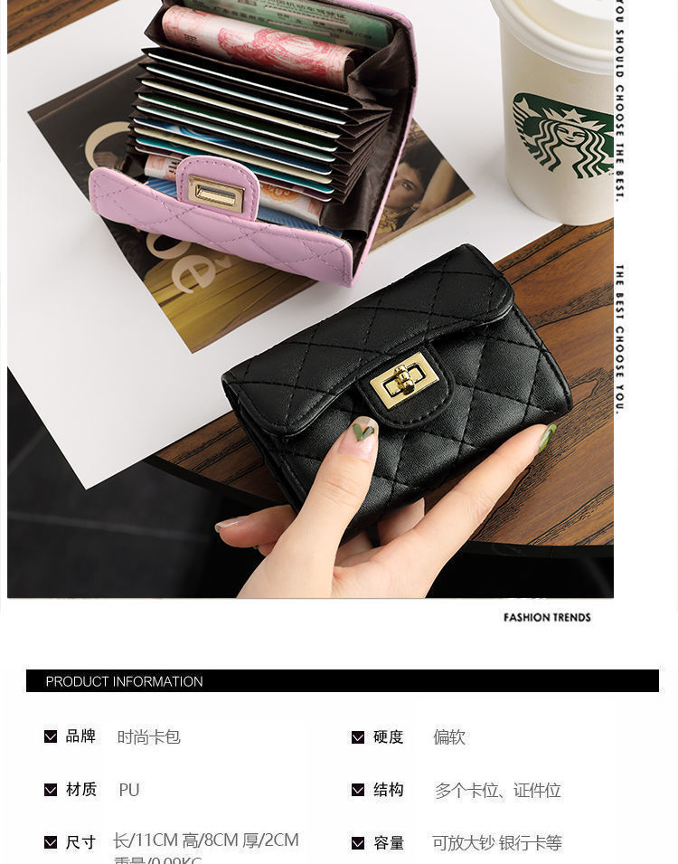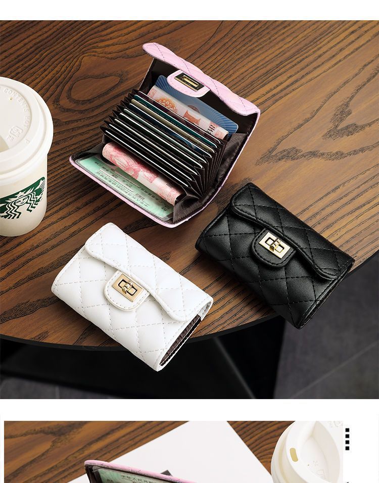 2022 새로운 소형 카드 가방 마름모꼴 소형 샤넬 스타일 미니 카드 가방 부드러운 가죽 작은 동전 지갑 운전 면허증 멀티 카드 홀더