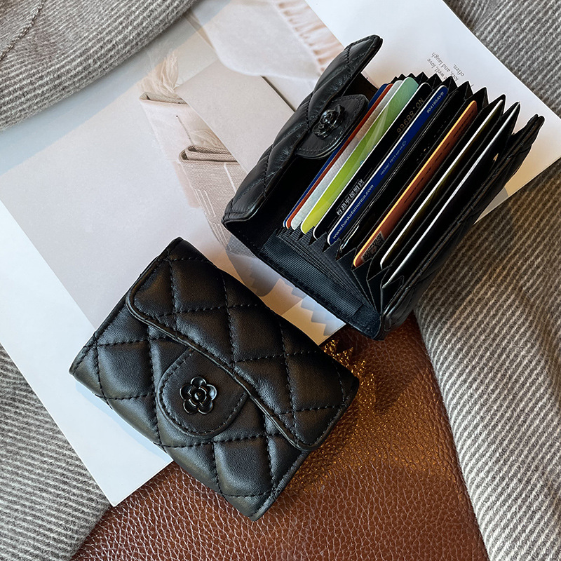 2022 새로운 소형 카드 가방 마름모꼴 소형 샤넬 스타일 미니 카드 가방 부드러운 가죽 작은 동전 지갑 운전 면허증 멀티 카드 홀더스토어 가기