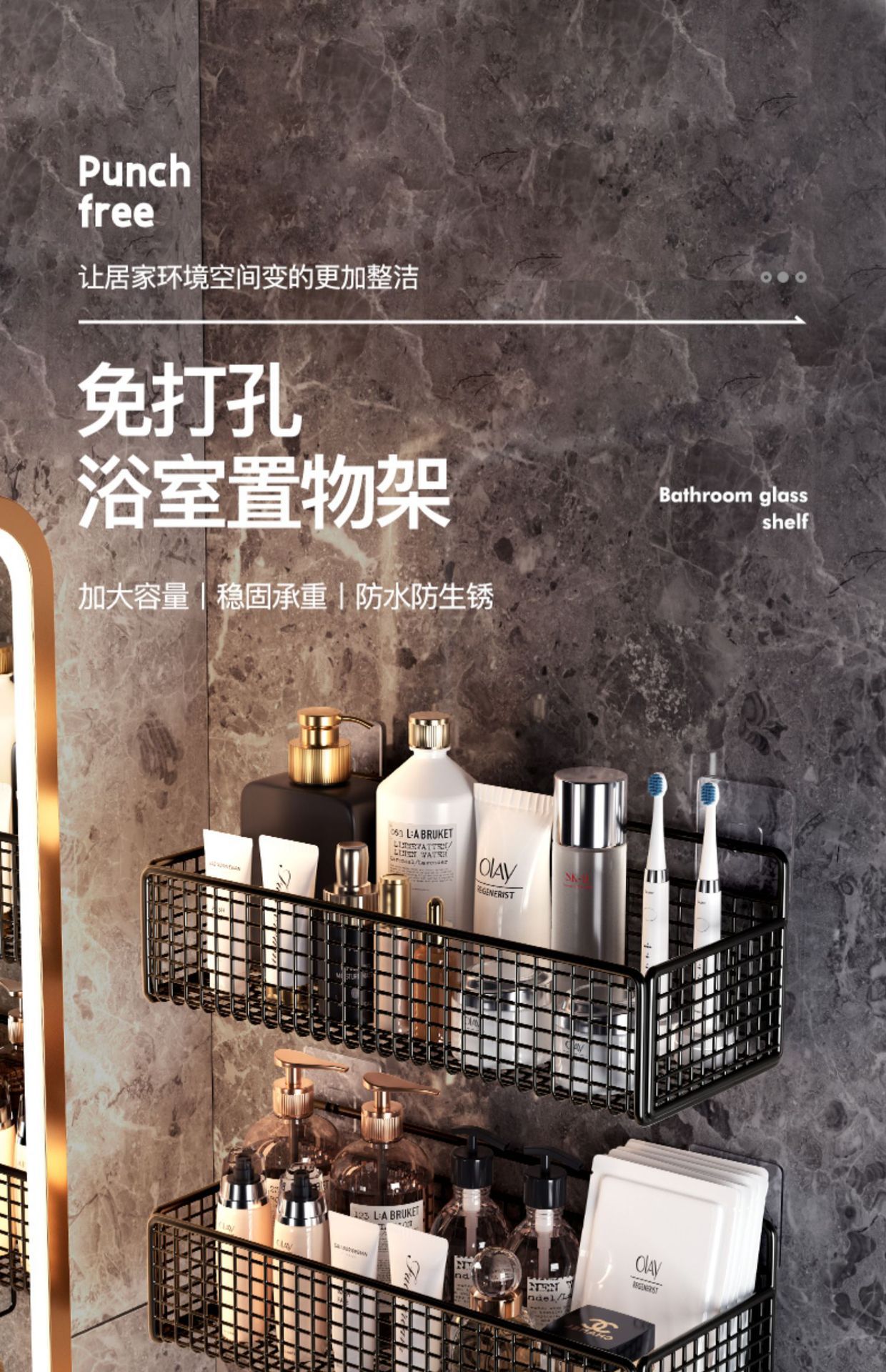 욕실 수납 랙 가정용 욕실 벽걸이 수납 및 마감 세척 테이블 대형 펀치없는 수납 랙