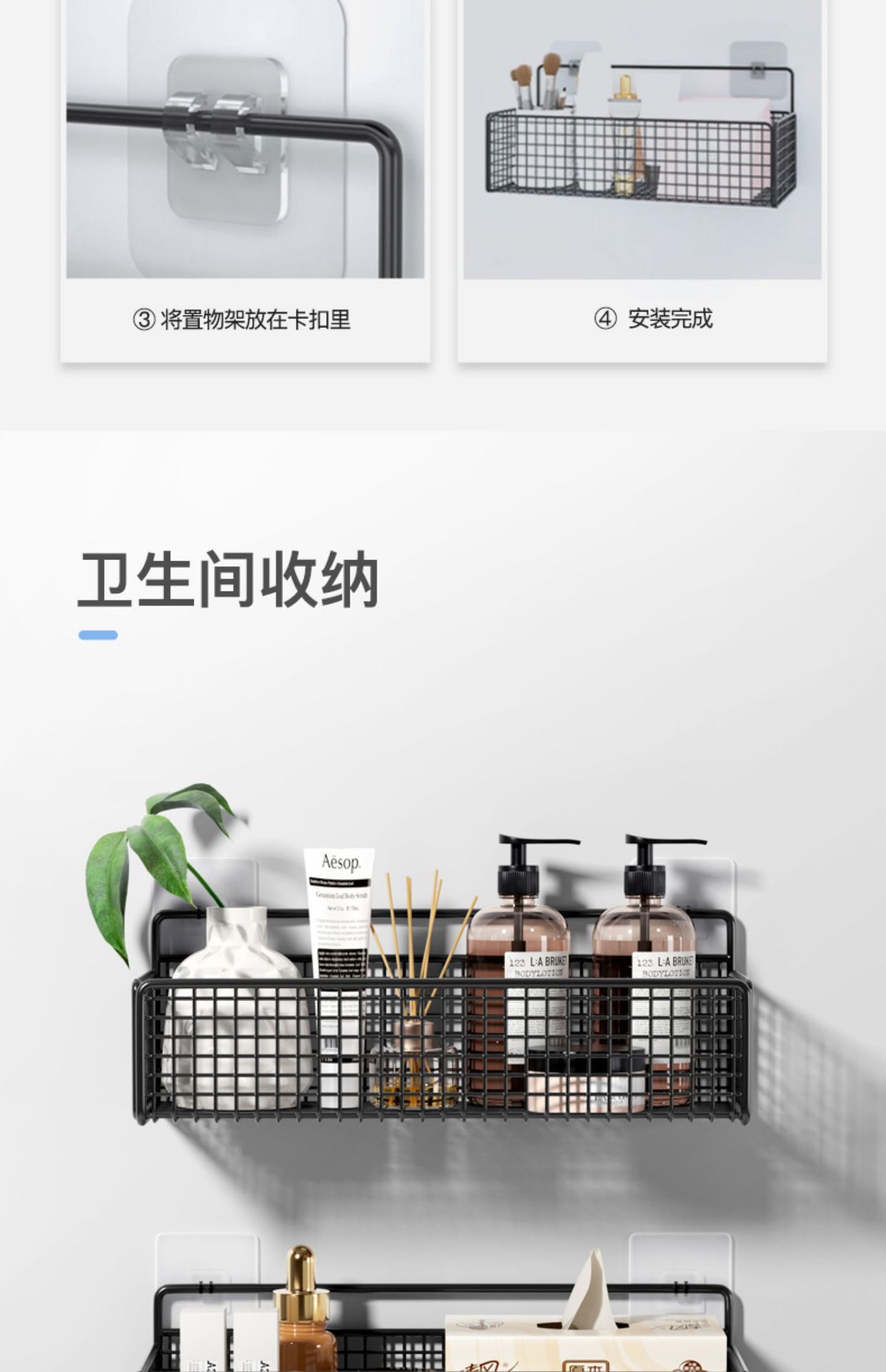 욕실 수납 랙 가정용 욕실 벽걸이 수납 및 마감 세척 테이블 대형 펀치없는 수납 랙스토어 가기