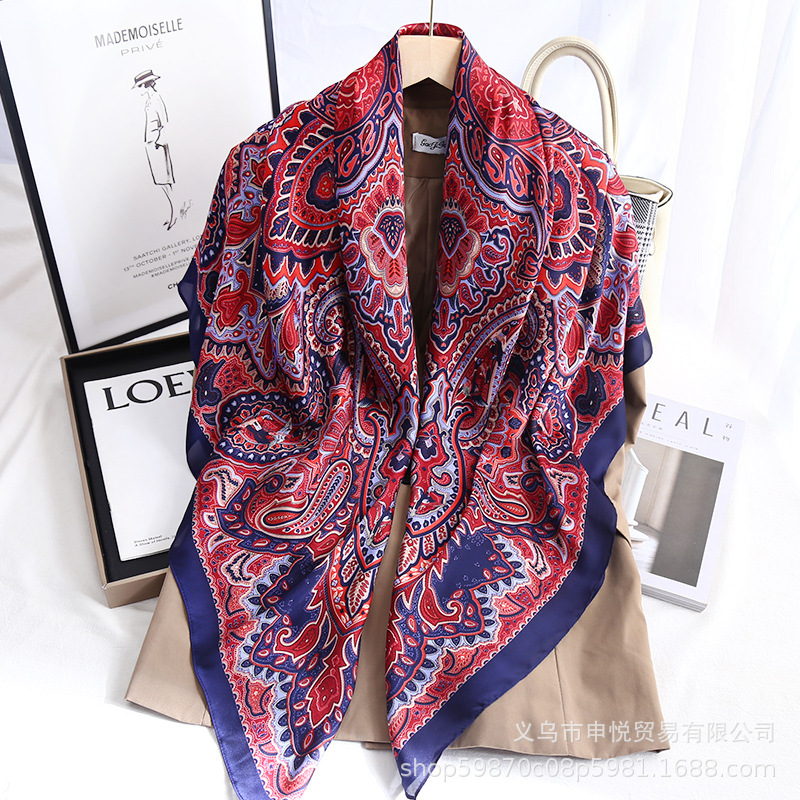 봄과 가을 패션 새로운 우아한 실크 110 대형 스퀘어 스카프 여성용 여행 선 스크린 숄 레트로 실크 스카프