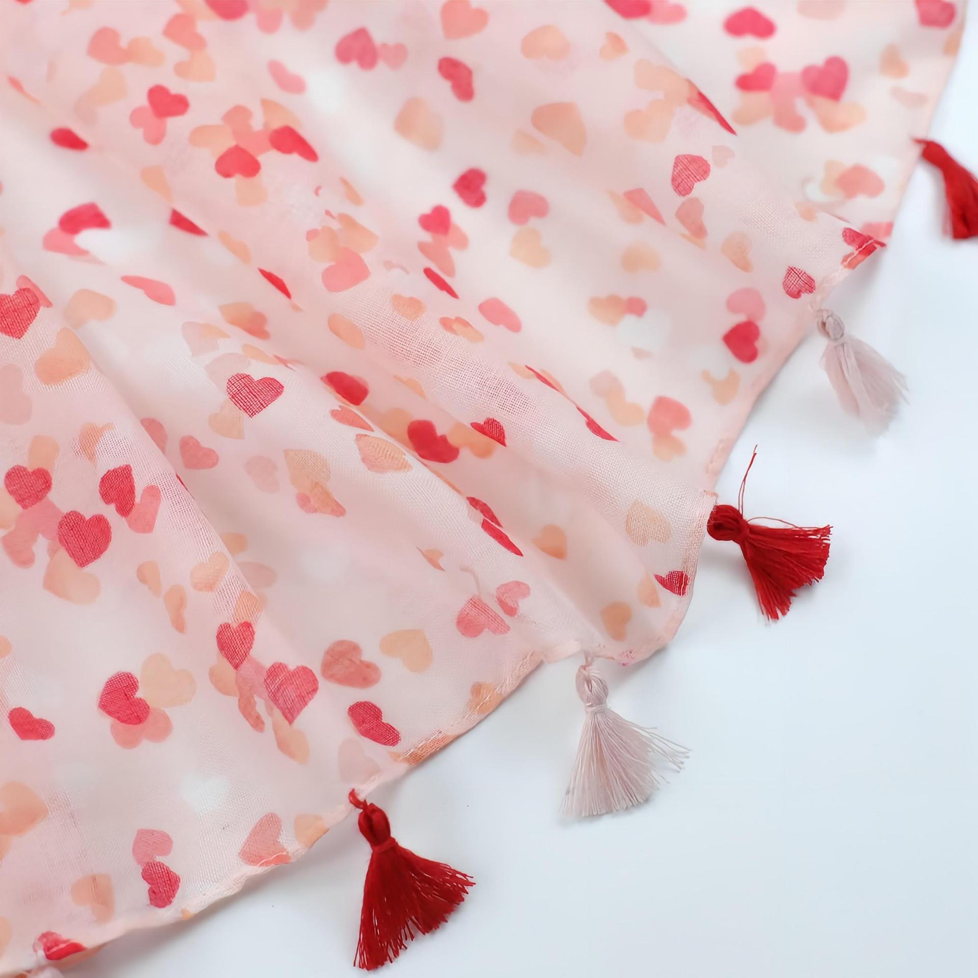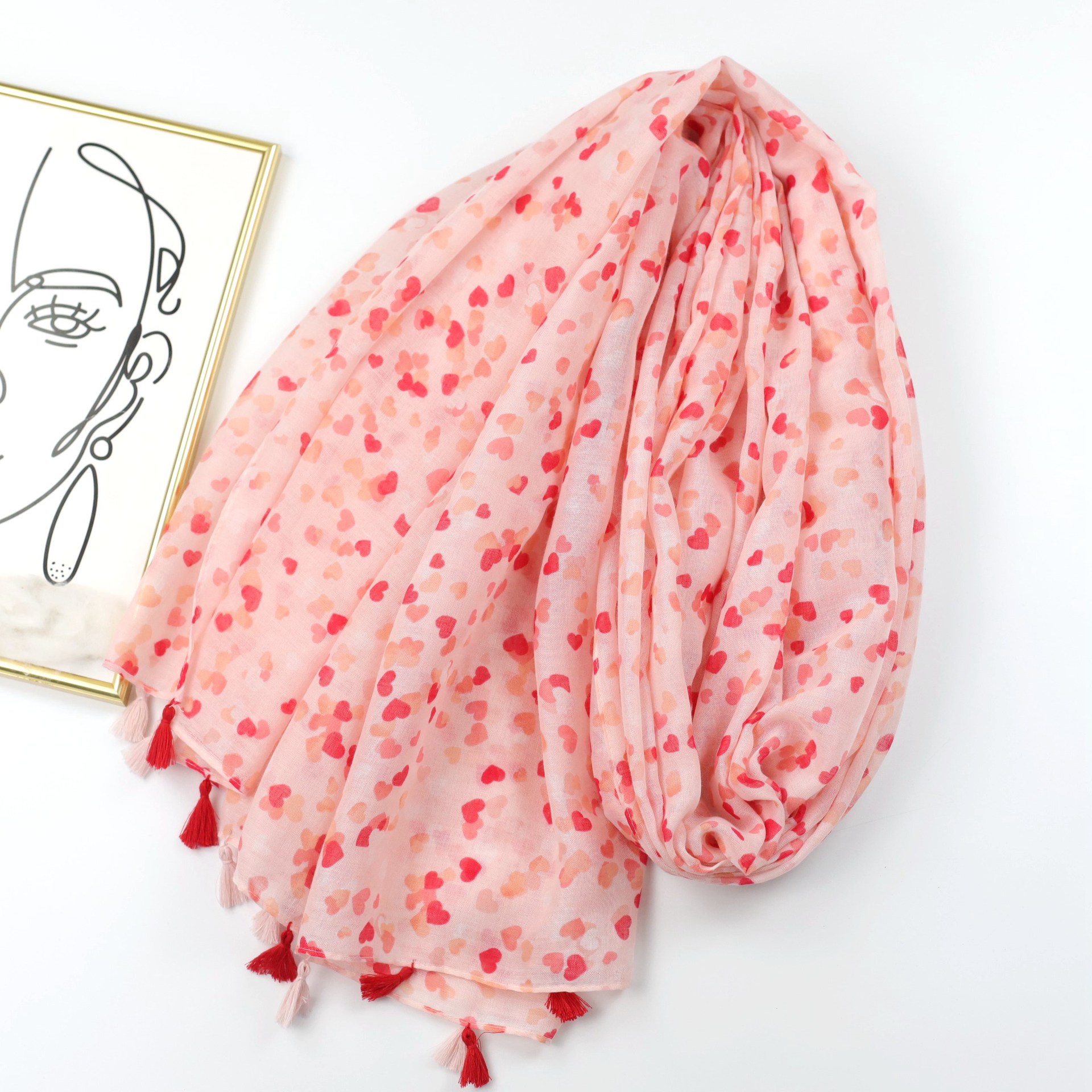 작은 하트 무늬 발리사 공장 직판 해외 수출 신선하고 달콤한 핑크 하트 무늬 발리사 롱 스카프 여행용