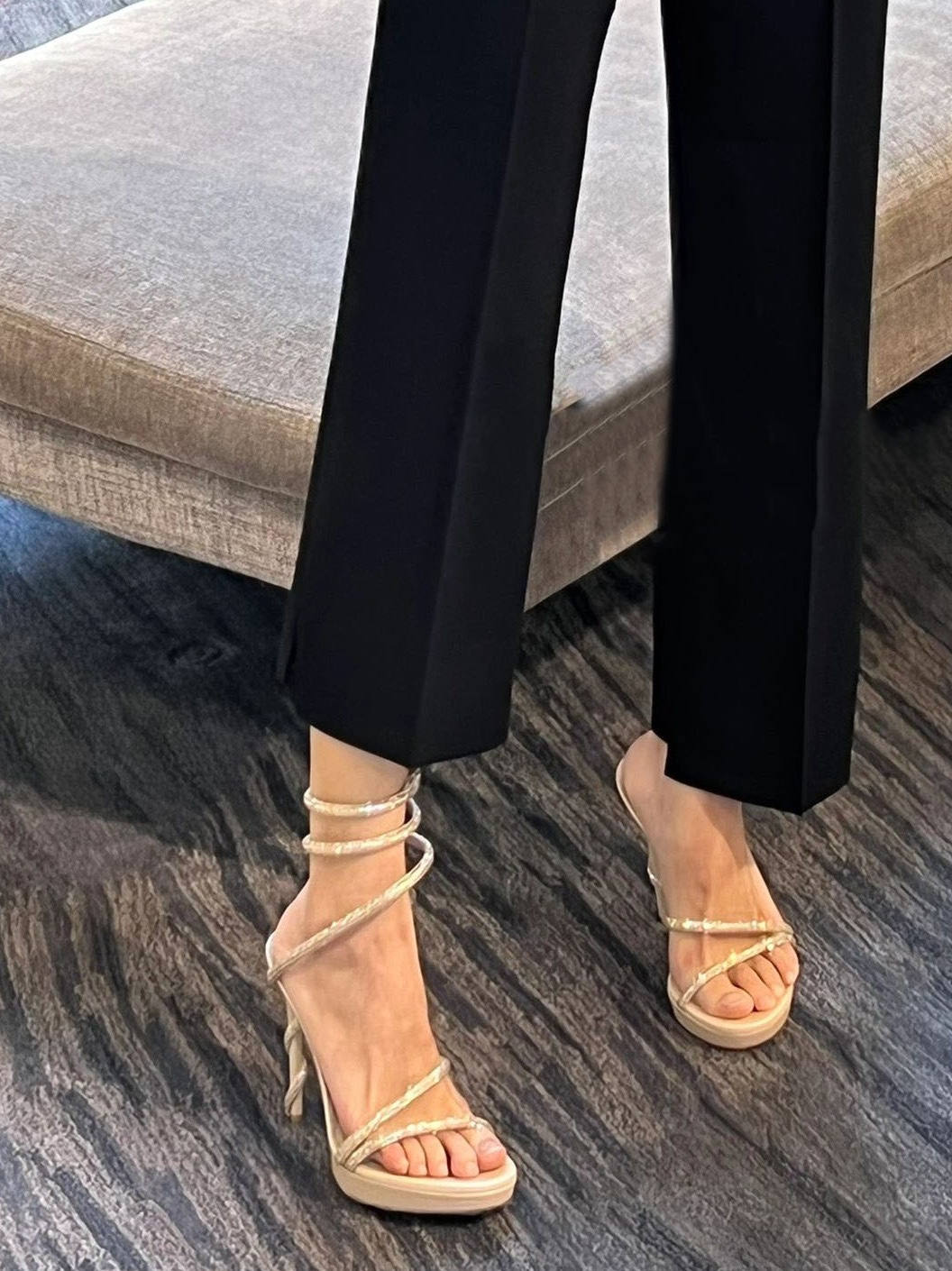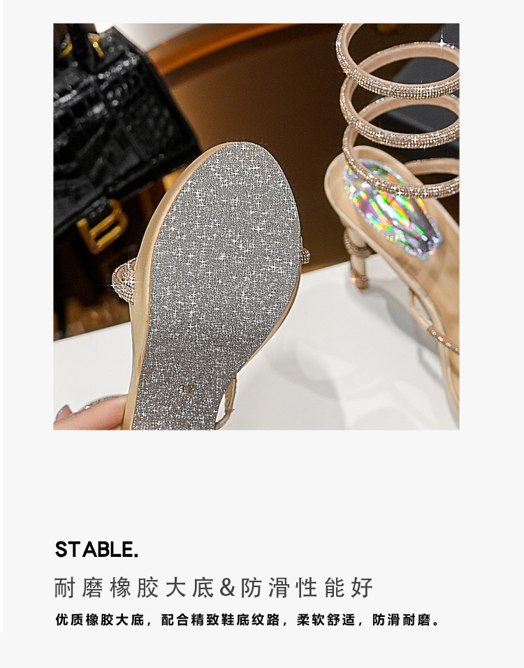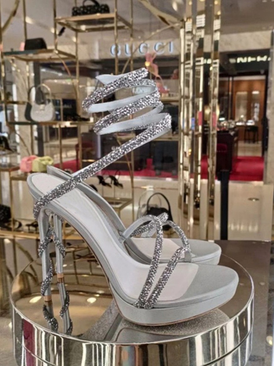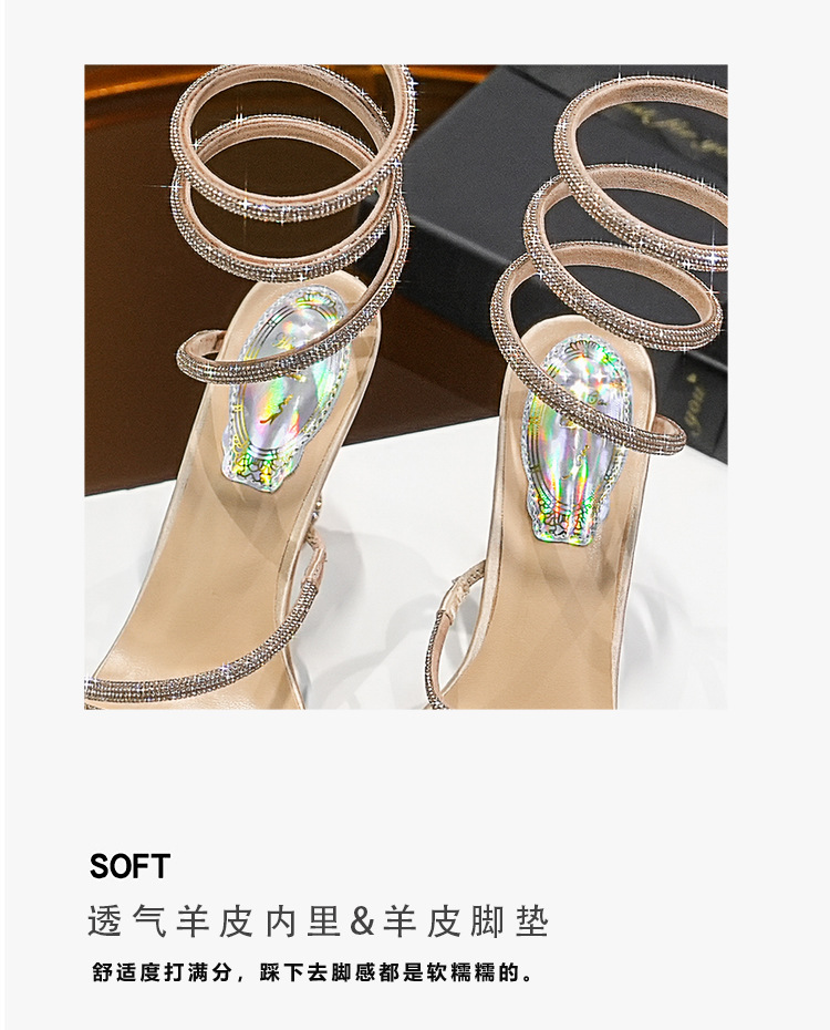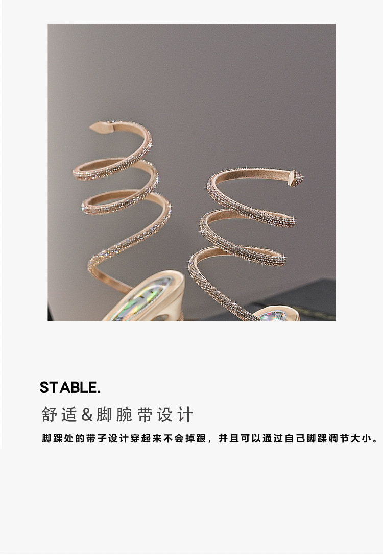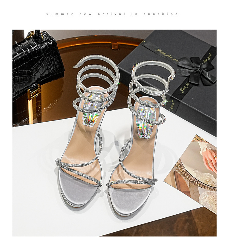 Wu Xuanyi 동일 스타일 RC Rhinestone 샌들 여성용 뱀 모양의 랩 섹시 오픈 발가락 힐토 플랫폼 하이힐 신발스토어 가기