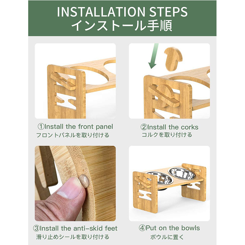 대나무와 나무 애완 동물 수유 랙 고양이 그릇 랙 더블 볼 개 음식 랙 나무 고양이와 개 피더 단단한 나무 애완 동물 식기스토어 가기