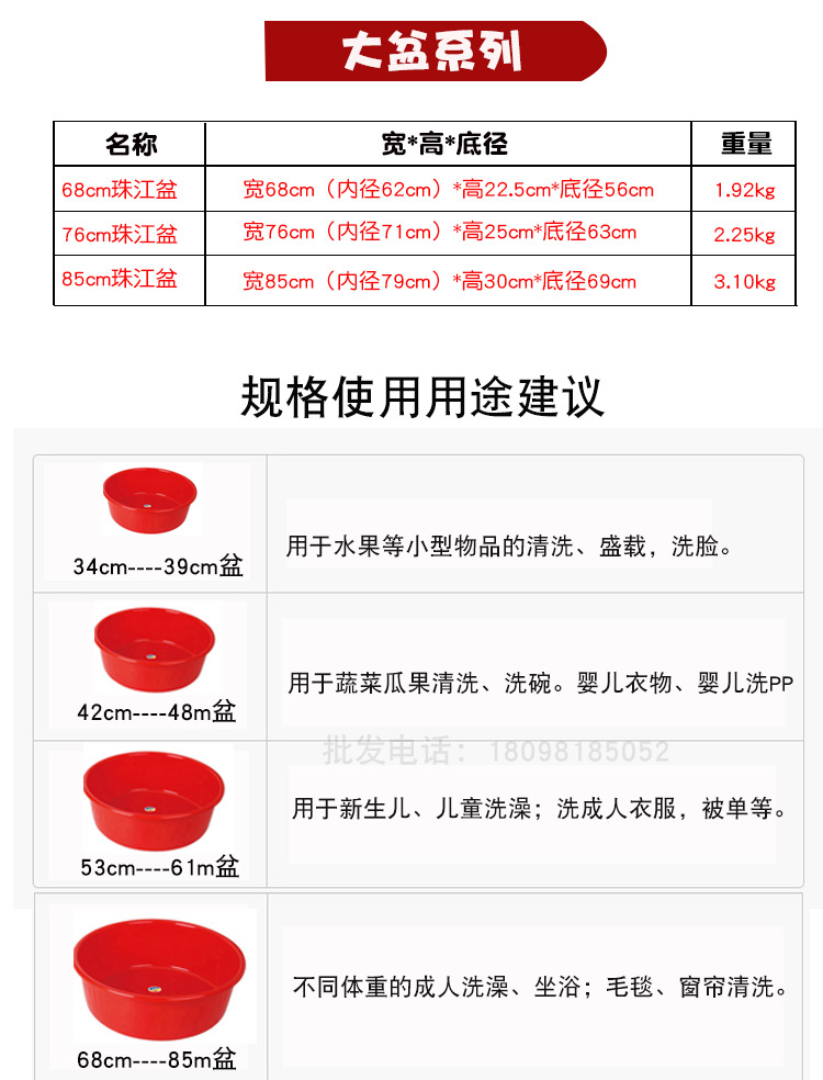 도매 진주 강 플라스틱 대형 두꺼운 플라스틱 분지 레드 분지 세면대 야채 분지 성인 어린이 목욕 분지