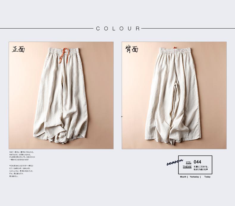 봄과 여름 새로운 캐주얼 바지 예술적인 면과 린넨 느슨한 스커트 바지 발목 길이 바지 여성용 린넨 와이드 레그 팬츠