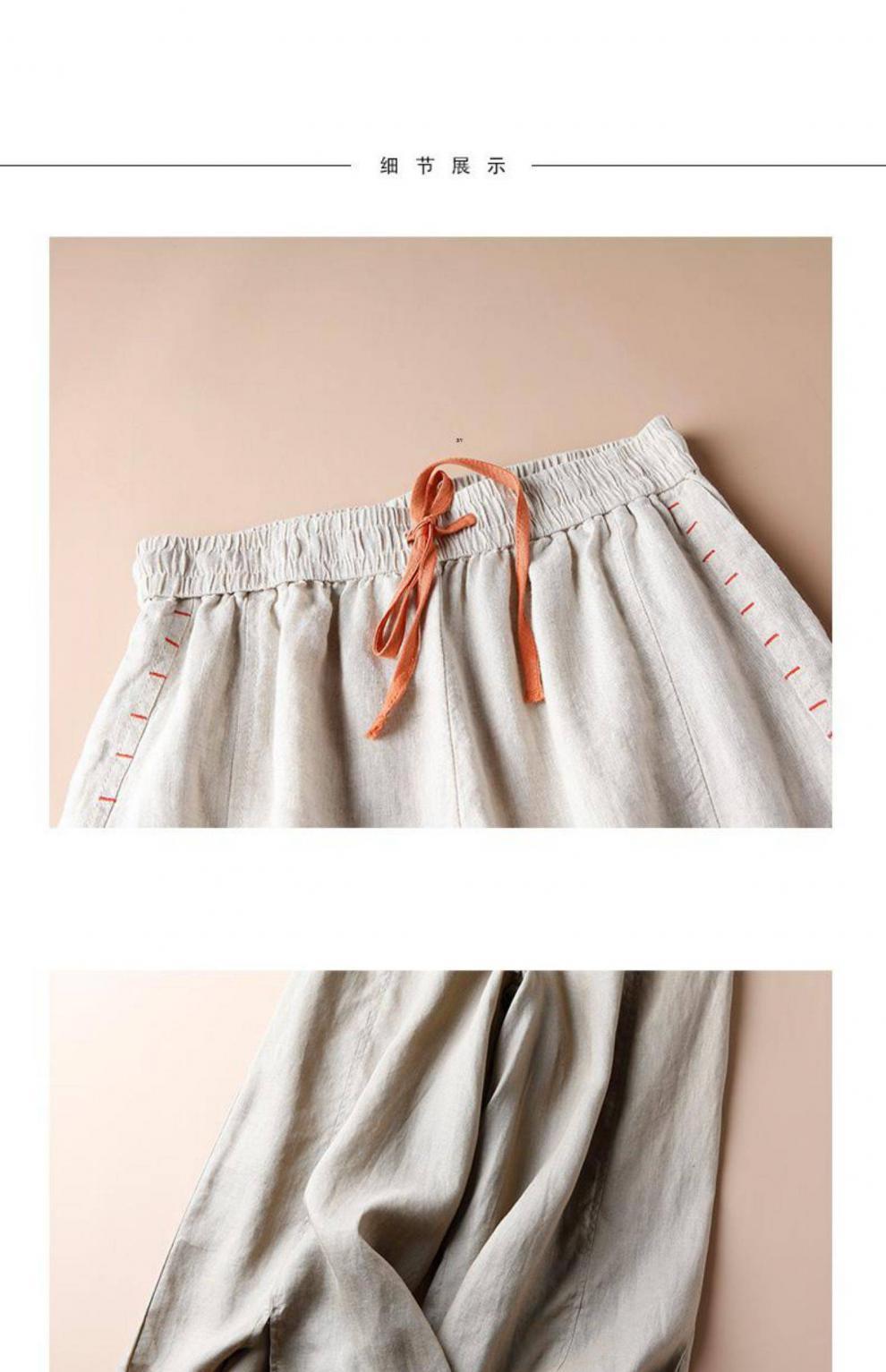 봄과 여름 새로운 캐주얼 바지 예술적인 면과 린넨 느슨한 스커트 바지 발목 길이 바지 여성용 린넨 와이드 레그 팬츠스토어 가기