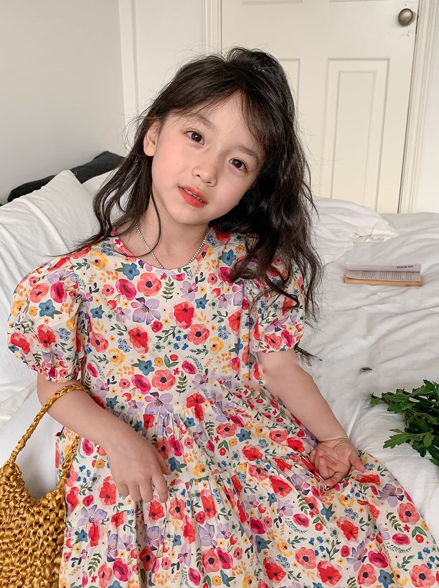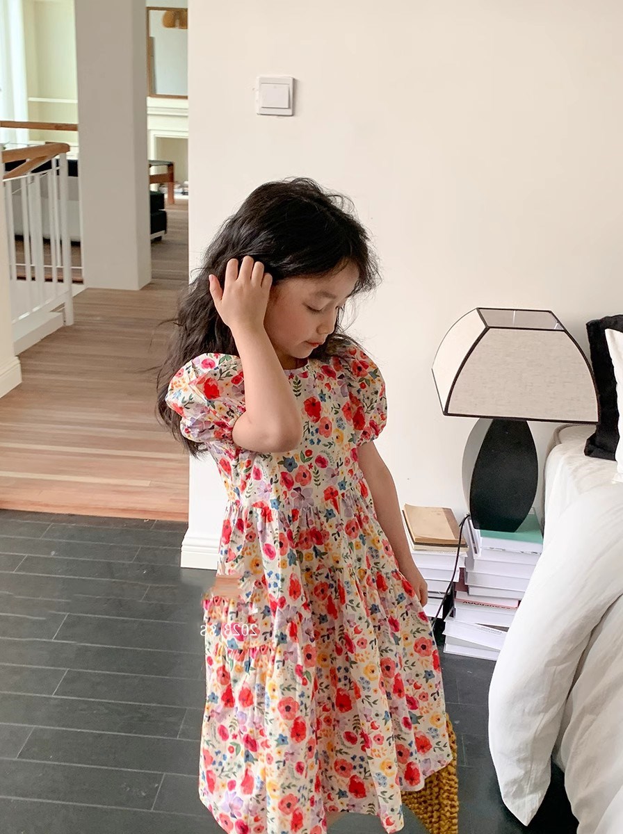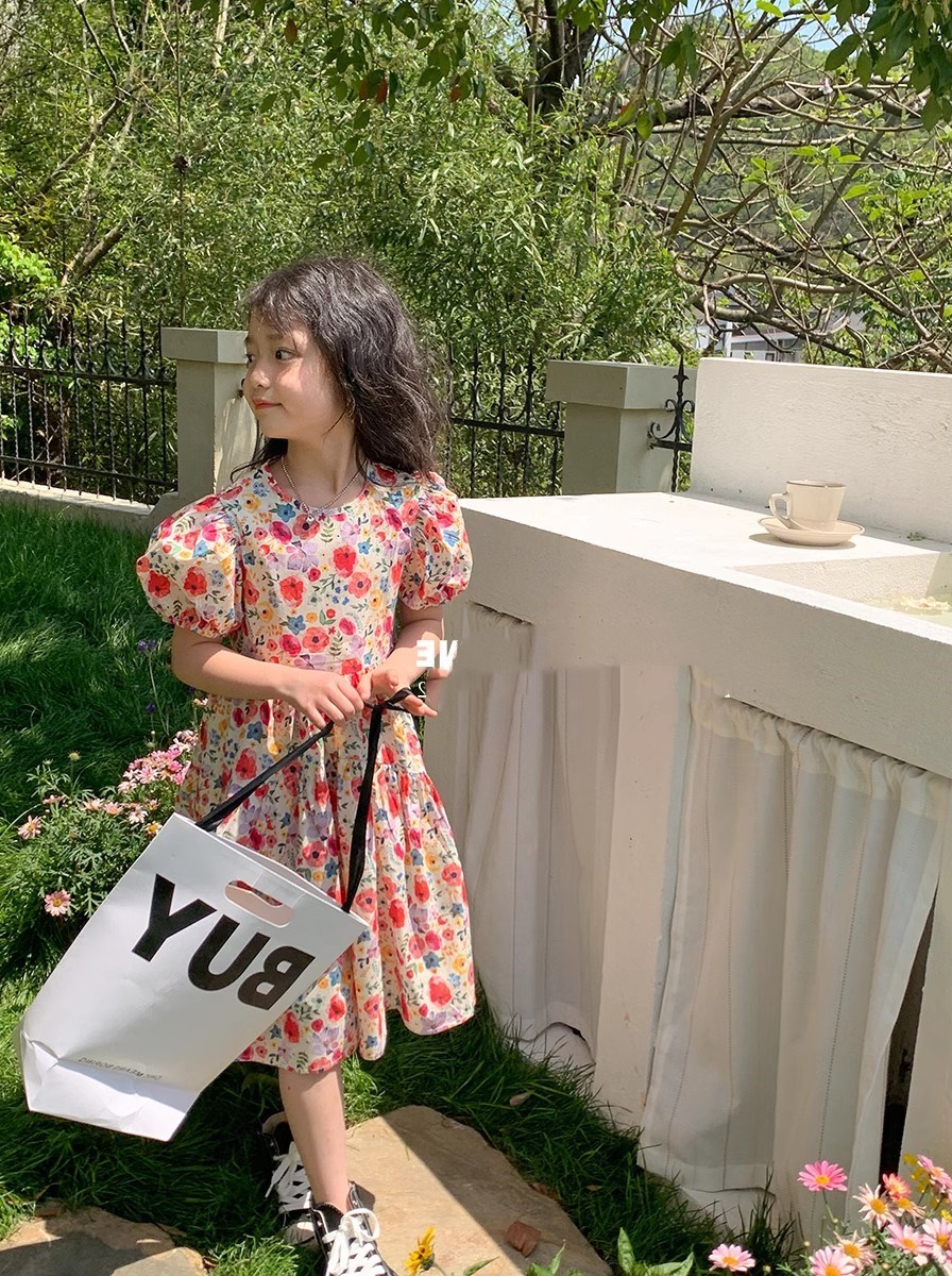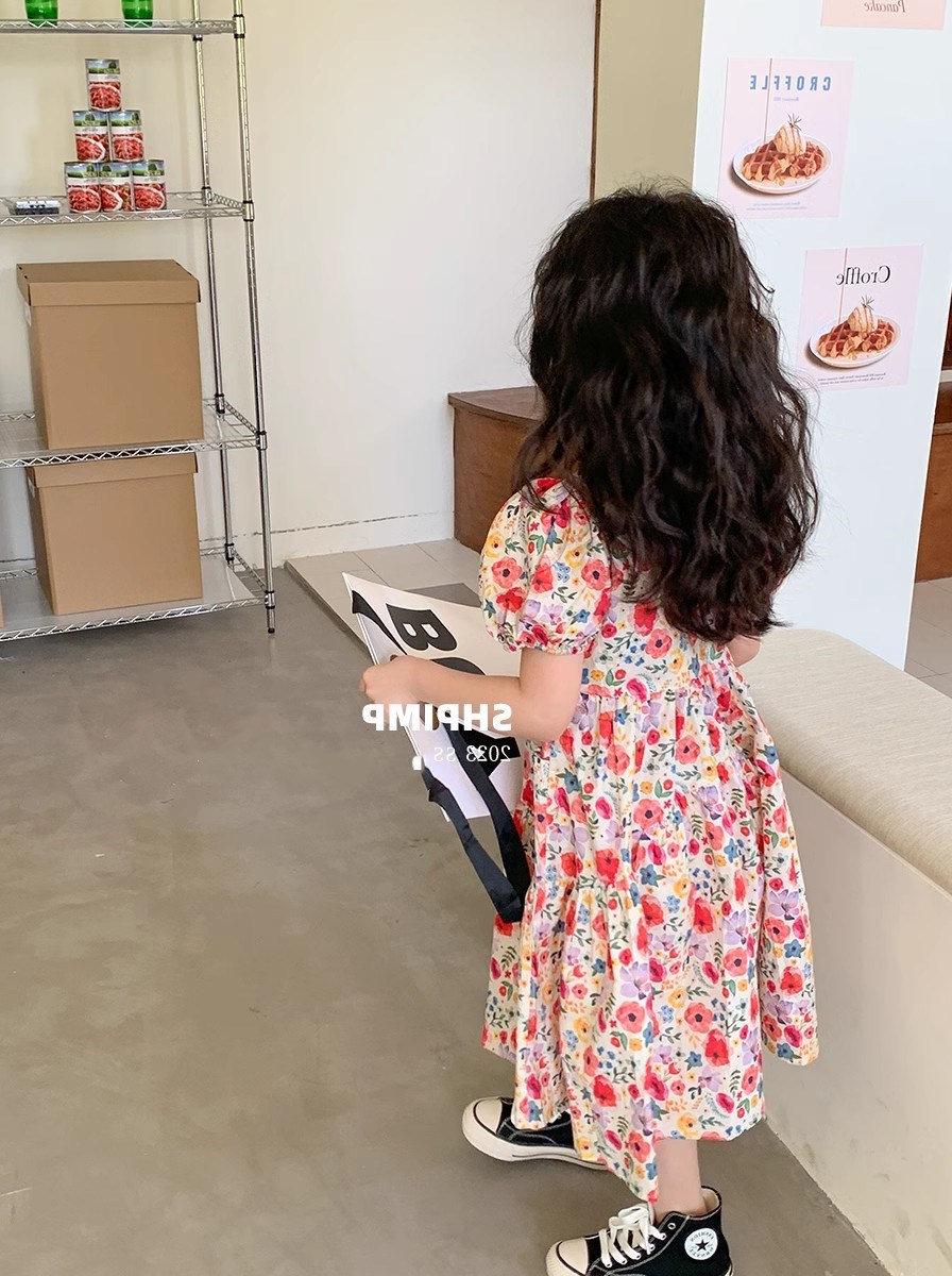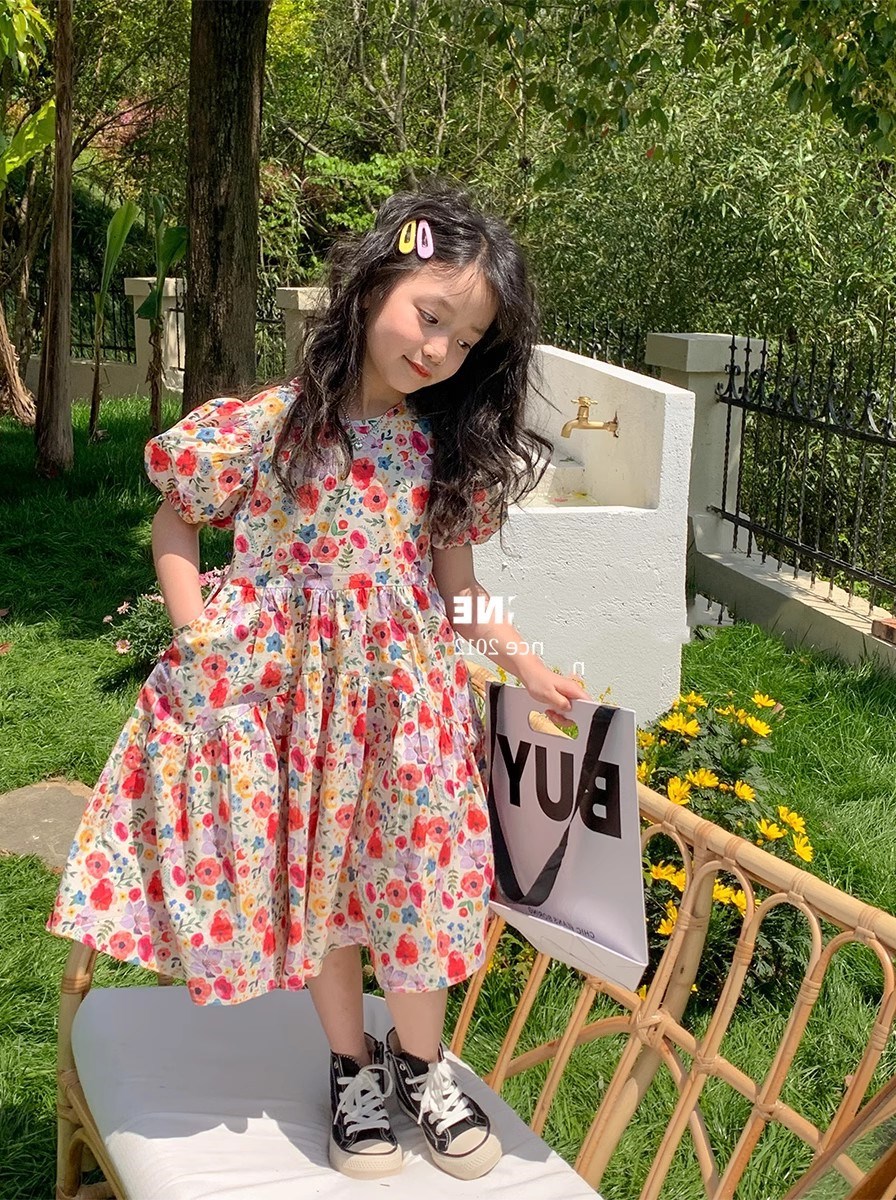 소녀의 원피스 달콤한 꽃 퍼프 슬리브 원피스 공주 원피스 23 여름 새로운 대외 무역 아동복스토어 가기