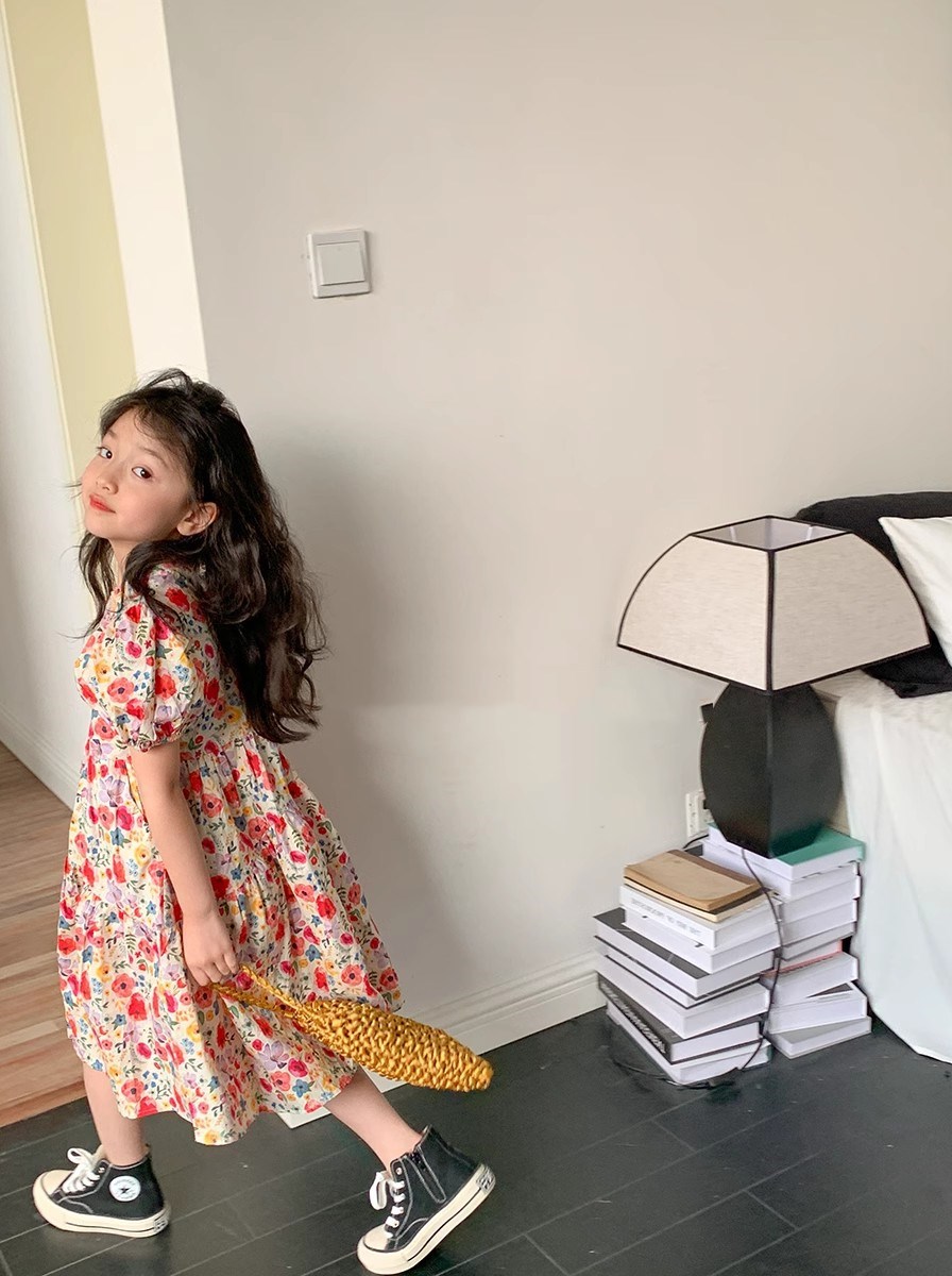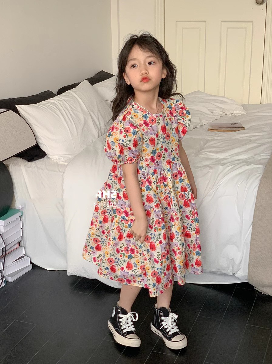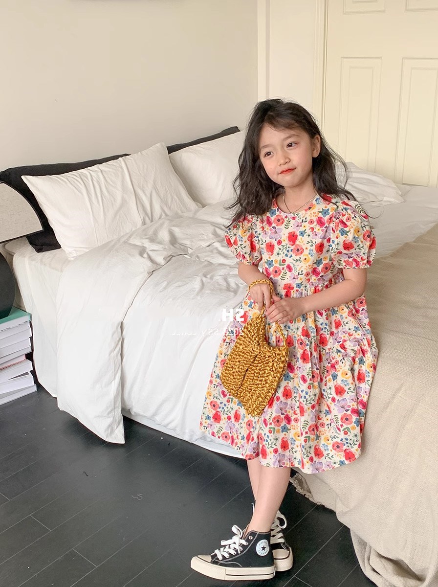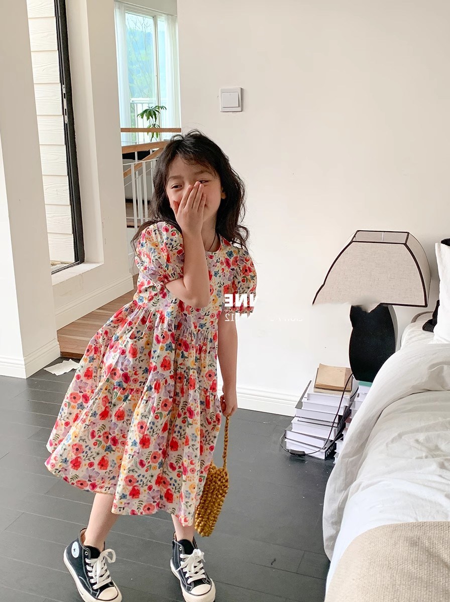 소녀의 원피스 달콤한 꽃 퍼프 슬리브 원피스 공주 원피스 23 여름 새로운 대외 무역 아동복스토어 가기
