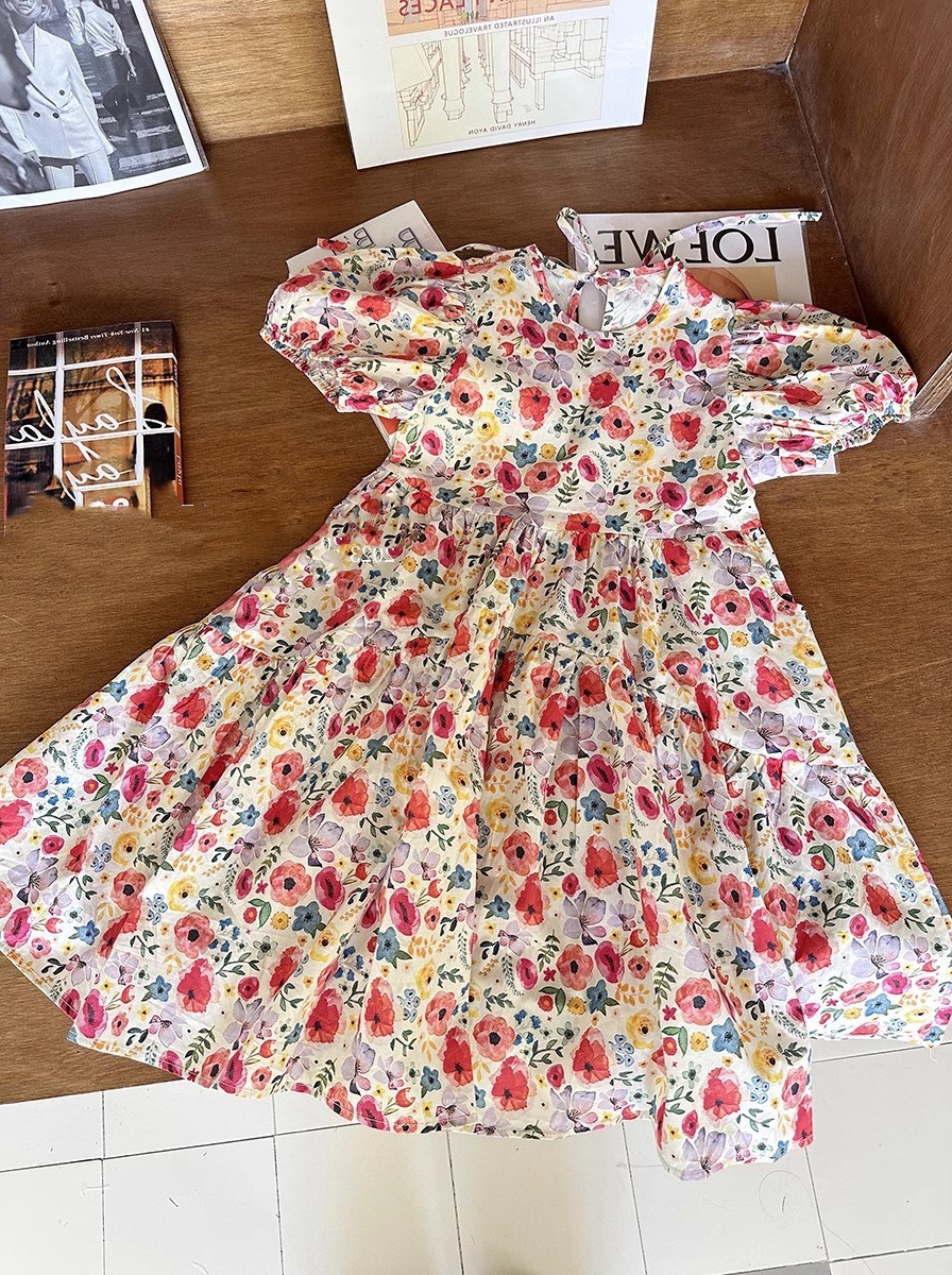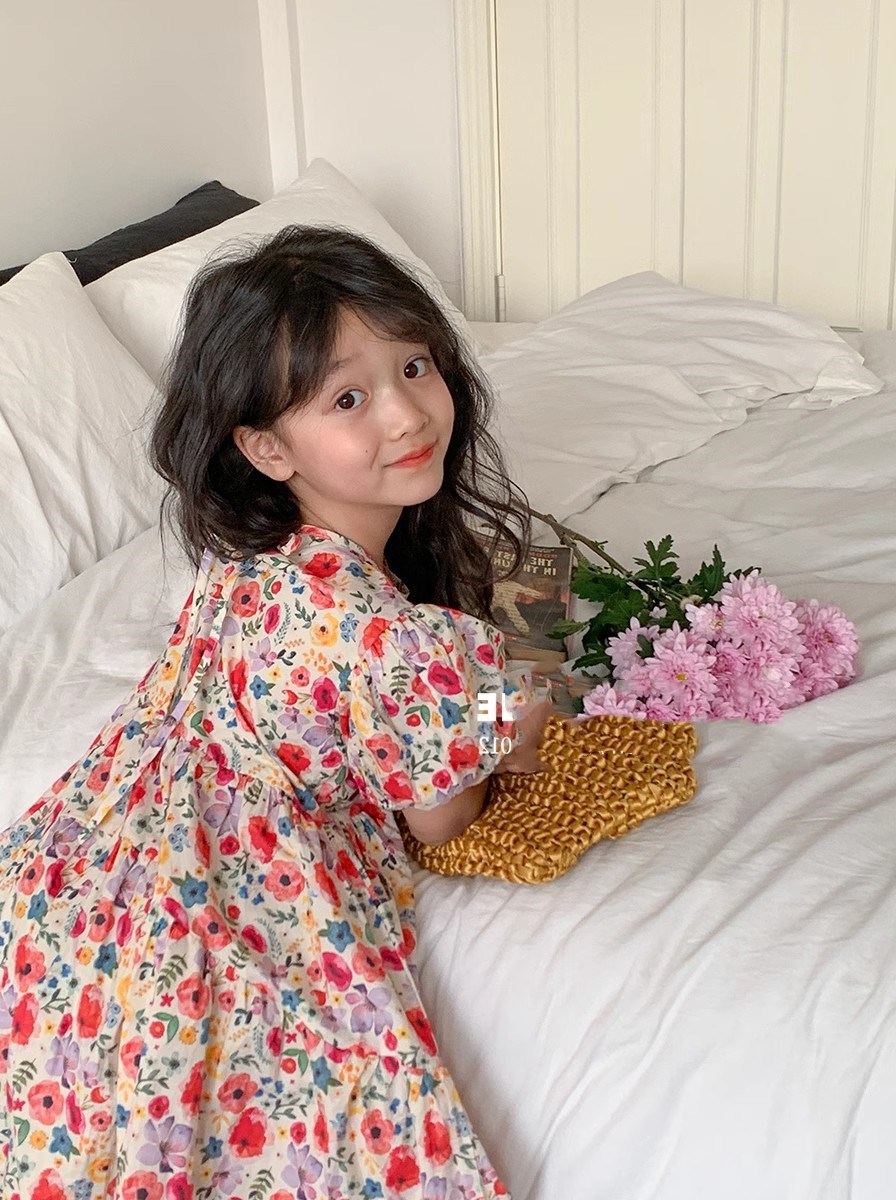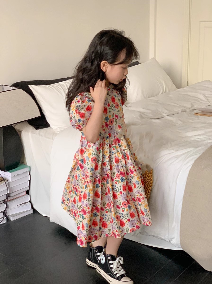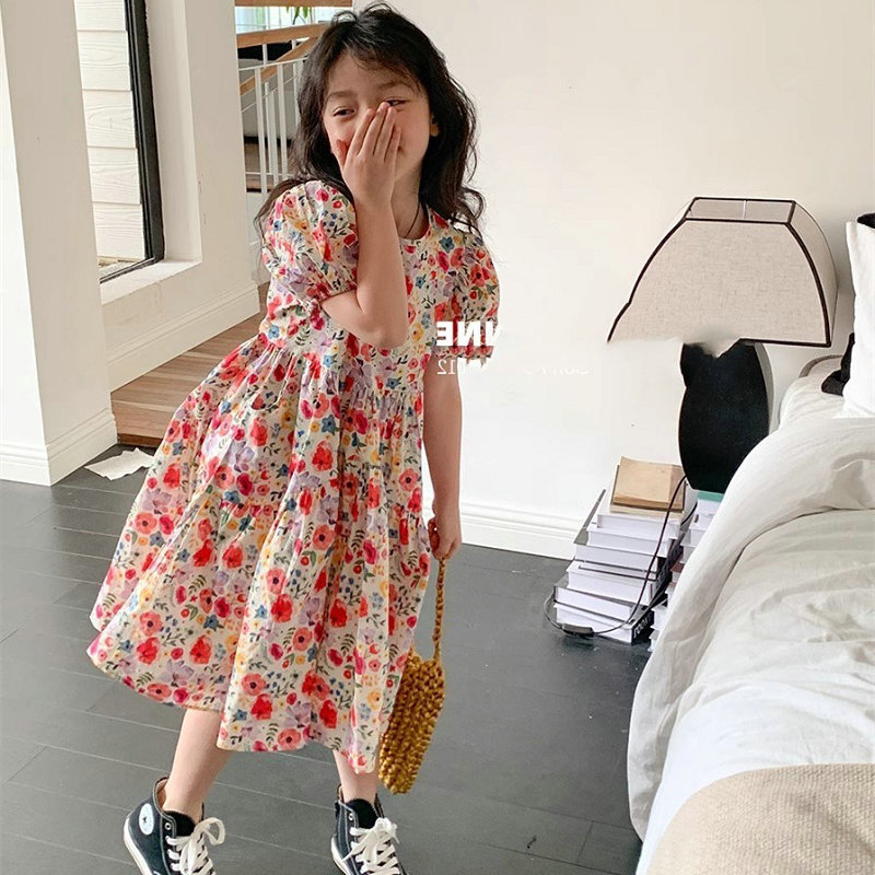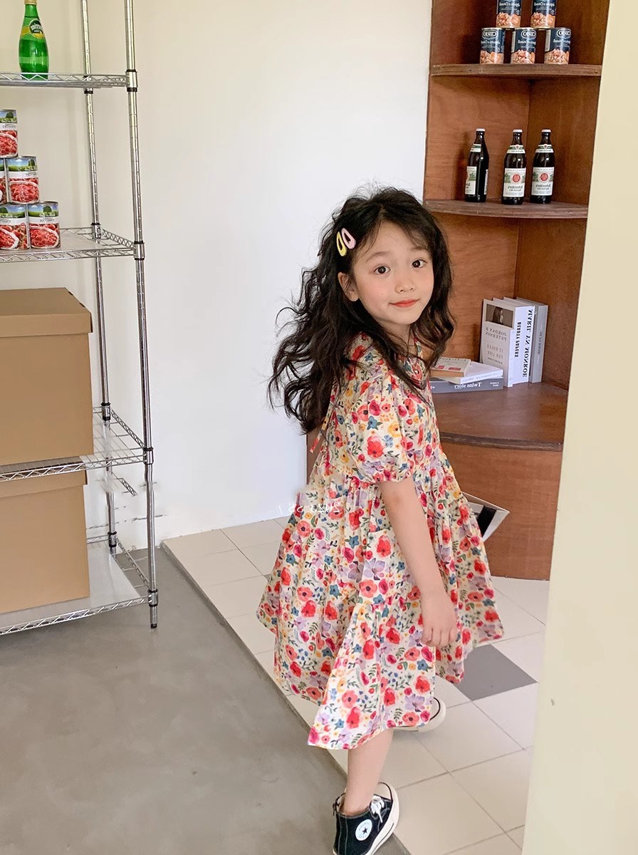 소녀의 원피스 달콤한 꽃 퍼프 슬리브 원피스 공주 원피스 23 여름 새로운 대외 무역 아동복스토어 가기