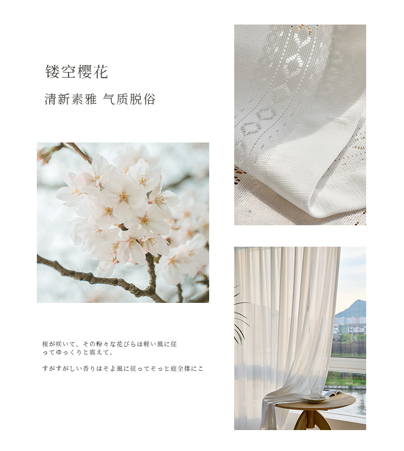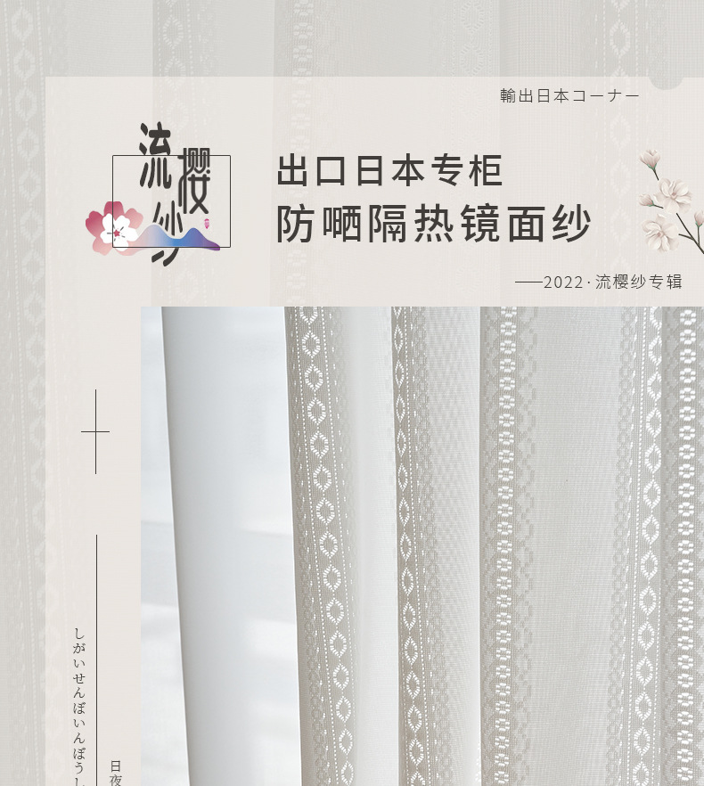일본 선 스크린 단열 투명 불투명 거울 흐름 체리 사 커튼 화이트 거즈 커튼 거실 침실 베이 창 발코니