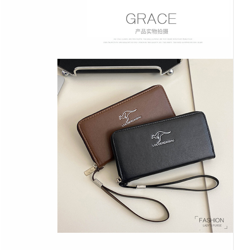 새로운 크로스 보더 롱 남성용 클러치 백 레트로 PU 남성용 지갑 멀티 카드 휴대 전화 가방 대용량 동전 지갑