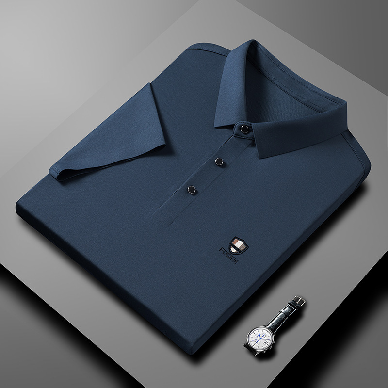 남자의 여름 남자의 새로운 반팔 티셔츠 폴로 셔츠 옷깃 단색 얇은 통기성 아이스 실크 티셔츠 머리카락 세대