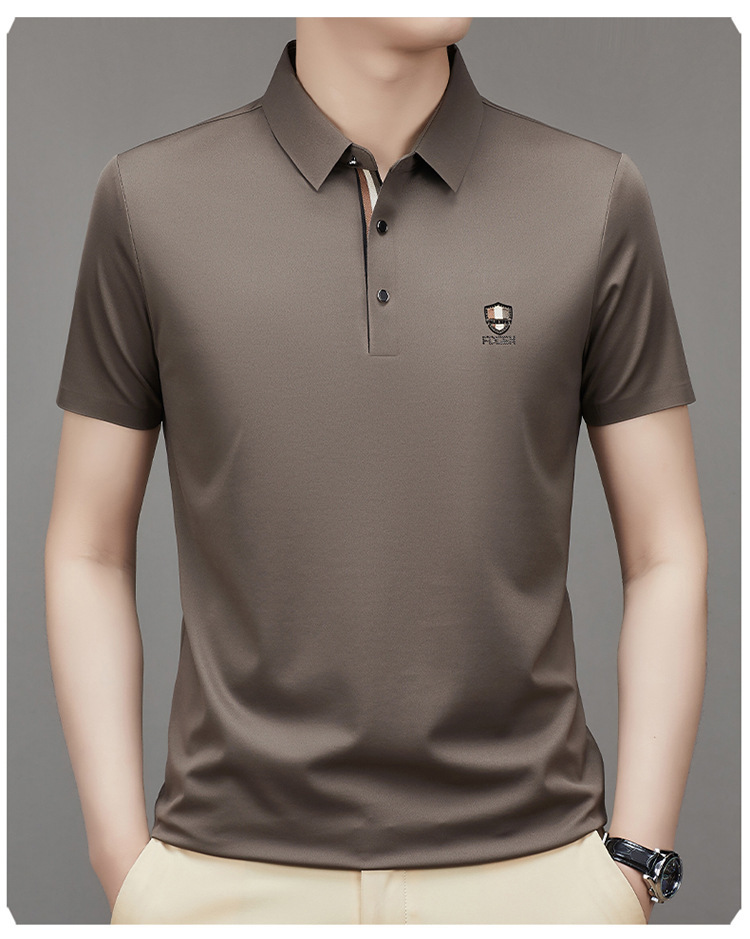 男装夏季男士新款短袖T恤POLO衫翻领纯色薄款透气冰丝T恤一件代发